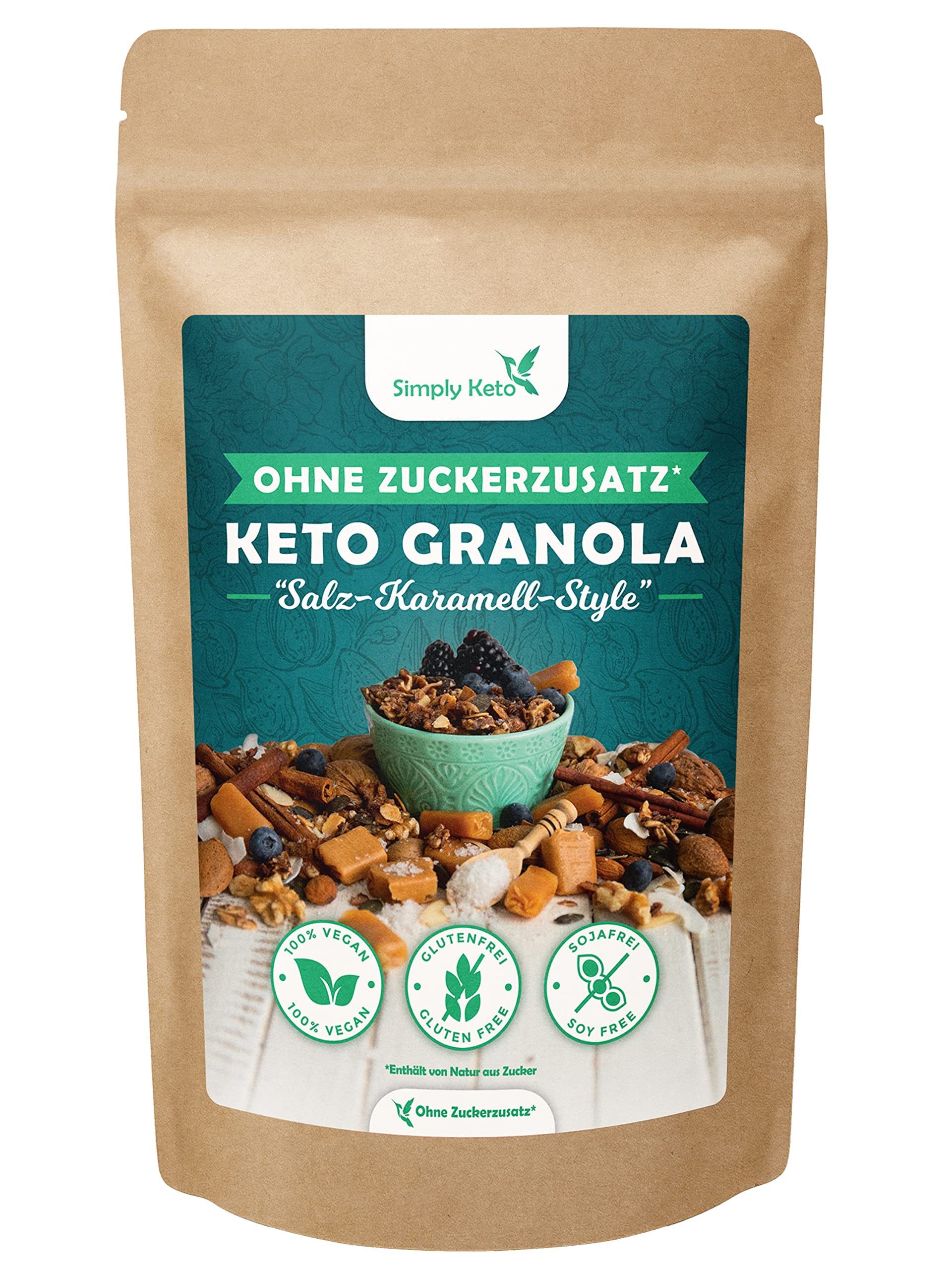 Simply Keto Knusper Granola Salted Caramel Lower Carb*alternative to muesli without added sugar 250 g sweet keto granola for a perfect breakfast paleo and vegan soy lactose and salt caramel 250 g 1er Pack