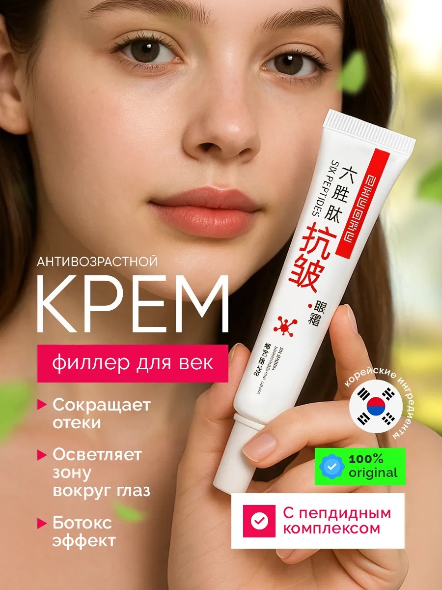Антивозрастной крем для ухода за областью вокруг глаз и для век от брендов косметики. превзойдет ваши ожидания. Уходовый бьюти - продукт разработан специально для деликатной кожи вокруг глаз, чтобы осветлить темные круги, убрать следы усталости, мешки и гусиные лапки, замедлить процессы старения. Подходит для всех типов дермы, включая сухую и жирную, чувствительную и проблемную, комбинированную и нормальную. Можно использовать утром и вечером, а также для подготовки к макияжу. Профессиональный антивозрастной крем эффективен от темных кругов, пигментных пятен и отеков изготовлен с использованием передовых формул корейской косметологии. Нано - пептиды в составе питательного средства работают на рассслабление мышцы: в результате пропадает напряжение во взгляде, разглаживаются морщины, запускается омоложение. Гидролизованный коллаген поддерживает кожу упругой и эластичной, улучшает её структуру, ускоряет обновление клеток. Низкомолекулярная гиалуроновая кислота увлажняют на клеточном уровне, разглаживают поверхностные и глубокие морщинки. Поставляется в тюбике с носиком - аппликатором для масажа области вокруг глаз, как массажный ролик. Это улучшает метаболизм и повышает эффективность ухода. крем вокруг глаз дарит интенсивное увлажнение и питание, восстанавливает естественную красоту и здоровье, оказывает лифтинг - эффект. Может использоваться против глубоких заломов зоне межбровки, носогубных складок. Закажите anti age средство сейчас и ощутите преимущества уходовой корейской косметики на себе.