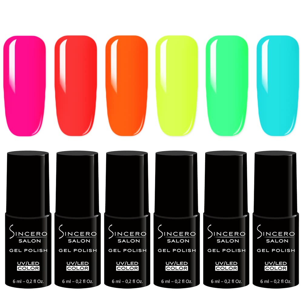 ""Sincero Salon"" gel nail polish set neon dream, 6 x 6 ml: make your colorful atmosphere and shine in the dark!The most popular neon colors in a set.Perfect for celebrations, hen parties, birthdays, anniversaries, Halloween.Professional quality.A rich pigment color for perfect opacity in two layers. A super gloss effect that lasts for a long time.Slightly soluble.The nail polish uses UV LED lamp to harden.Note: Can cause allergic reactions.A skin test is required before use.Break off the application when irritation occurs.Please do not file your nails too much.The nails have a natural layer that can prevent the problem of infection.Please apply the gel thin.A layer that is too thick or a gel that is too thick on the skin can lead to burns when hardening under a nail lamp.Application: polymerization - 60 seconds UV LED.Distance - Dissolve in Cleaner Cutter.13 free formulas.Free from: Formaldehyde, Toluol, DBP Formaldehyde resin, caphor, ethyltosylamide, xylol.Simple application: easy to apply, slide on the nail very easily!Strong pigmentation, rich color.Excellent liability.Glossy and long -lasting: if used correctly, it can last more than 14 days.You will receive a high -gloss and reflective finish without notches, splinters or spots.No discoloration or change in the color.""Sincero Salon"" Gel-Nagellack SET Neon Dream, 6 x 6 ml: Machen Sie Ihre bunte Stimmung und leuchten Sie im Dunkeln! Die beliebtesten Neonfarben in einem Set. Perfekt für Feiern, Junggesellinnenabschiede, Geburtstage, Jubiläen, Halloween. Professionelle Qualität. Eine reichhaltige Pigmentfarbe für perfekte Deckkraft in zwei Schichten.Ein Super-Glanz-Effekt, der lange anhält. Leicht löslich. Der Nagellack verwendet UV LED-Lampe zu härten.HINWEIS: Kann allergische Reaktionen hervorrufen. Vor der Anwendung ist ein Hauttest erforderlich. Brechen Sie die Anwendung ab, wenn eine Reizung auftritt. Bitte feilen Sie Ihre Nägel nicht zu stark. Die Nägel besitzen eine natürliche Schicht, die das Problem der Infektion verhindern kann. Bitte tragen Sie das Gel dünn auf. Eine zu dicke Schicht oder ein zu dickes Gel auf der Haut kann beim Aushärten unter einer Nagellampe zu Verbrennungen führen. ANWENDUNG: Polymerisation - 60 Sek. UV LED. Entfernung - Auflösen in Cleaner Cutter. 13 FREIE FORMELN. FREI VON: Formaldehyd, Toluol, DBP Formaldehydharz, Caphor, Ethyltosylamid, Xylol. EINFACHE ANWENDUNG: Einfach aufzutragen, gleitet ganz leicht auf den Nagel! Starke Pigmentierung, satte Farbe. Ausgezeichnete Haftung. GLÄNZEND UND LANG ANHALTEND: Bei richtiger Anwendung kann er mehr als 14 Tage lang halten. Sie erhalten ein hochglänzendes und spiegelndes Finish ohne Kerben, Splitter oder Flecken. Keine Verfärbung oder Veränderung des Farbtons.SINCERO SALON UV Gel Nagellack Set I Neon Dream 6 Gelnägel Farben I Soak Off Nagelgel Set