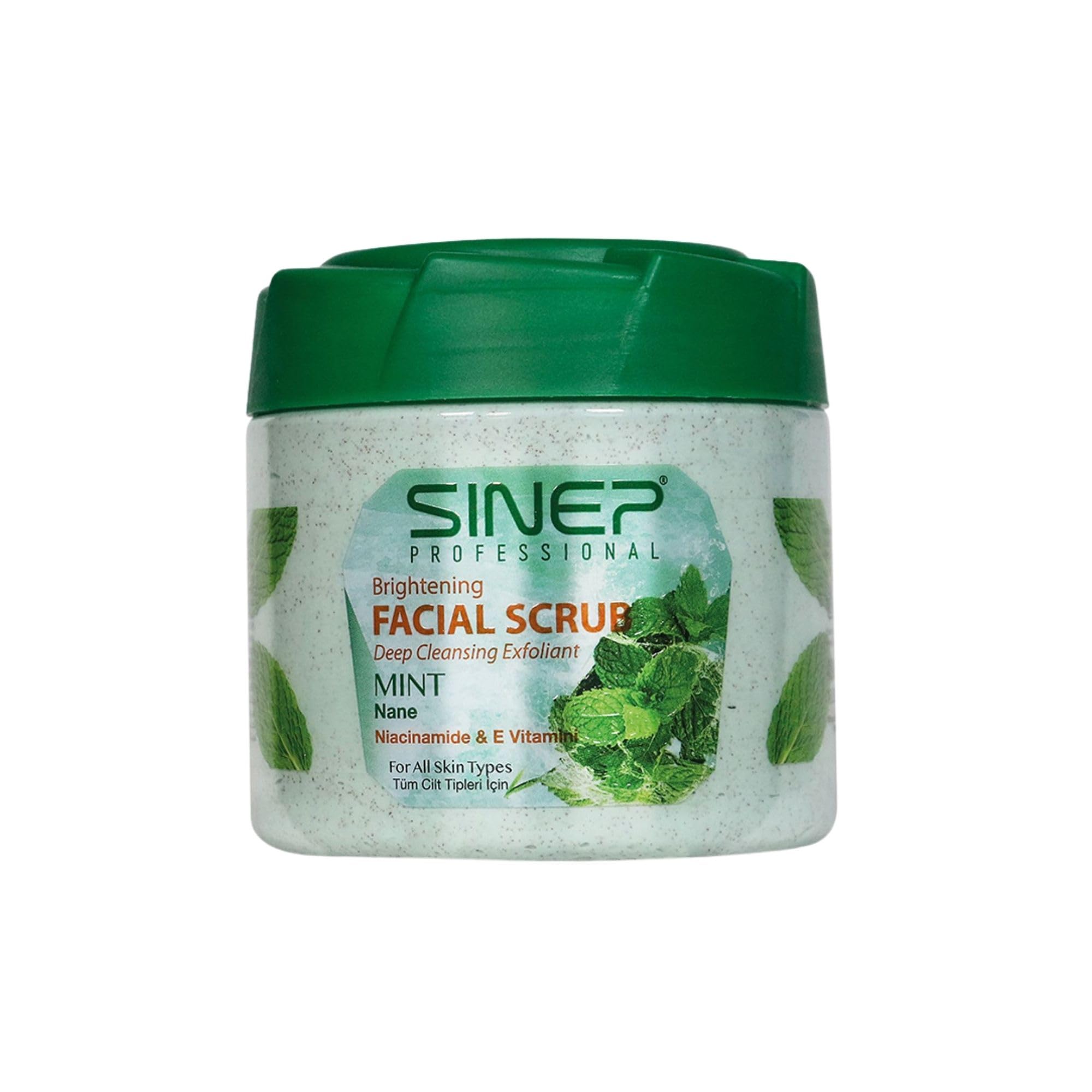 SINEP Professional Brightening face and body scrub exfoliating treatment with coconut extract and niacinamide for radiant skin 400 ml 400 ml mint