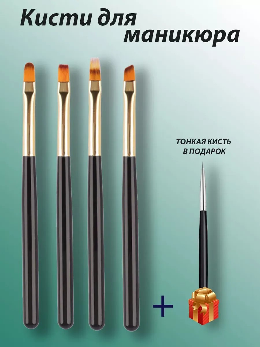 Набор кистей для маникюра и дизайна ногтей.Профессиональные кисти для маникюра и педикюра являются незаменимым инструментом для создания оригинального дизайна ногтей. Преимуществами кисточек является высококачественный синтетический ворс, который позволяет удерживать необходимое количество состава, долго сохраняет функциональные свойства и внешний вид, легко очищаются и не выпадают. В набор входят: Овальная кисть, квадратная, скошенная и кисть для омбре. В подарок идет тонкая кисть для прорисовки тонких линий. Наши кисти прекрасно подходят для наращивания ногтей, укрепления гелем и покрытия гель лаком . Упругий ворс которой равномерно распределяет гель по поверхности и выравнивает пластину. Упругие тончайшие волоски не загибаются и держат форму длительное время, обеспечивая профессиональный результат даже новичкам. Универсальный набор, многофункциональный . При условии правильного ухода за кистями и их эксплуатации прослужат Вам длительное время без утраты первоначальных характеристик.