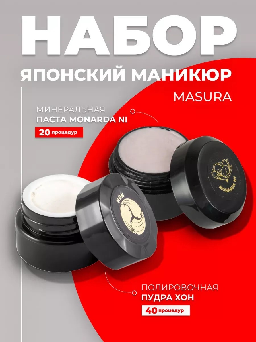Japanese manicure is a beauty trend gaining popularity among nail technicians and their clients. This nail polishing system combines traditional techniques and natural ingredients, ensuring beautiful and healthy nails. The set includes: MONARDA NI Paste (5 g); HON Polishing Powder (5 g). This mineral paste with monarda extract is designed to effectively polish nails and improve their condition. Monarda extract has moisturizing and nourishing properties that will help your nails become strong, healthy, and shiny. The paste will help eliminate roughness and create a perfect surface with a long-lasting shine. HON Powder will give your nails a dazzling shine, creating a perfectly smooth and shiny surface. The long-lasting shine will last up to 2 weeks. Japanese Masura Manicure Technique: Apply the nail sealing paste to the tip of an orange stick and spread it over the nail surface. Using the Kichin, rub the paste into your nails and polish them thoroughly. A mirror-like shine will appear on your nails as you rub the paste in, indicating the procedure is being performed correctly. Remove any remaining paste from the Kichin with an orange stick or brush. Load the tip of the orange stick with HON powder and distribute it over the nail plate. Using the clean side of the Kichin, rub the powder into your nails. Rubbing the powder in will enhance the shine. Finally, remove any remaining paste and powder with a napkin and enjoy the radiant, shiny finish! The strengthening, restorative, and beautiful shine of the Japanese SPA manicure is cumulative and will become more pronounced with each use. Immediately after the procedure, you can apply a colored or clear nail polish. Suitable for both professional and home use. This cosmetic product can be used for pedicures and men's manicures. The nail polishing set is the perfect way to add a touch of luxury to your nail care routine.