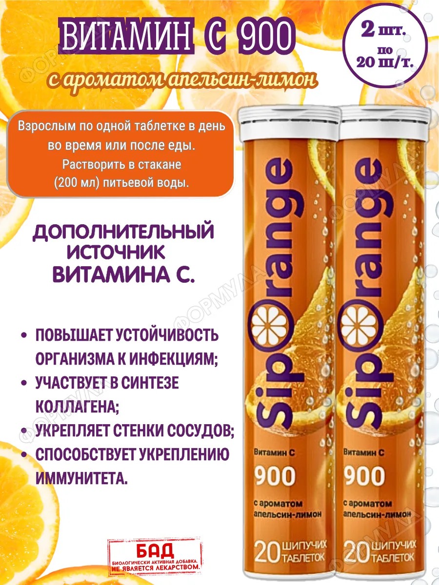 Siporange Витамин С 900 аромат апельсин-лимон 20шип./таб.*2уп.