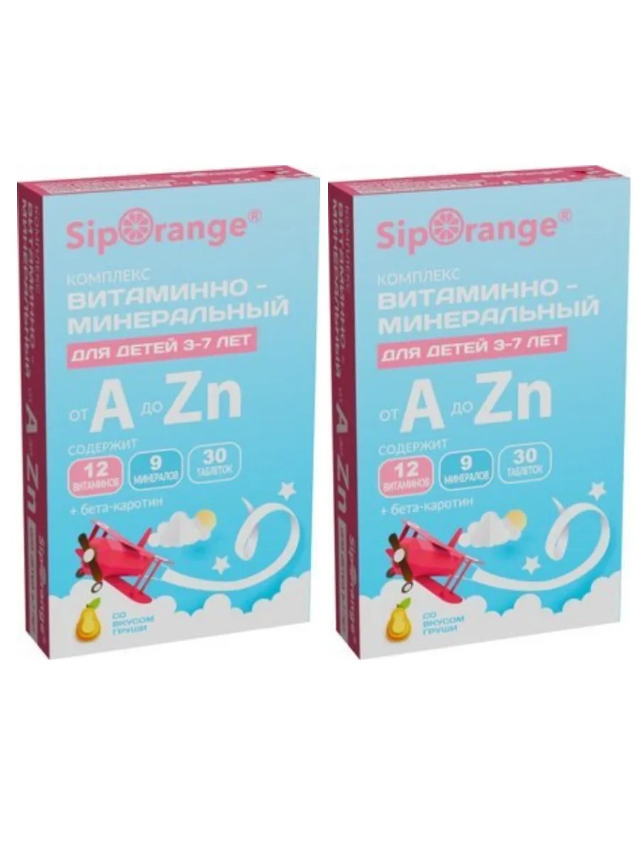 | Комплектация | siporange Комплекс витаминов и минералов для детей 30таб; 2 упаковки |
