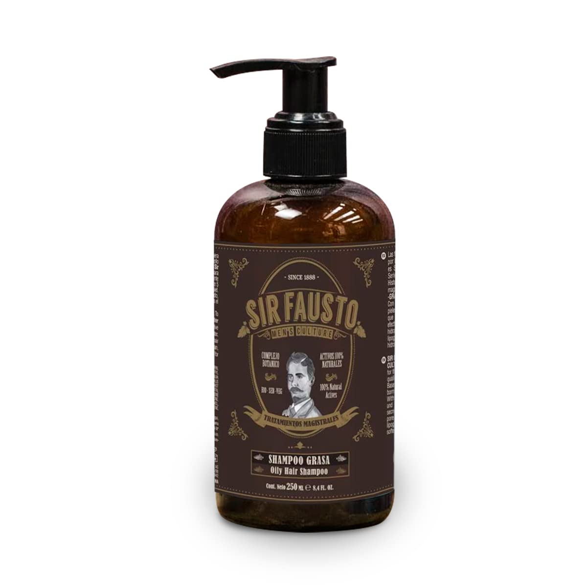 Sir Fausto's Oily Hair Shampoo is an anti-grease shampoo designed to regulate excess sebum on the skin and hair. It is part of the Masterfu Oily Treatment line for men and contains botanical ingredients, sulfopeptides and amino acids, Fomes Officinalis, B vitamins, and allantoin. Specially formulated for the treatment of oily skin and hair, it regulates sebum secretion without drying out the hair. It also reduces pore size, balances moisture levels, and soothes the skin. Furthermore, it leaves hair soft, moisturized, strong, and shinier, and does not irritate the scalp. Size: 250 mlDirections for use: Apply a small amount of this natural, sulfate- and silicone-free shampoo to wet hair, adjusting the amount according to hair length. Massage into the scalp for effective cleansing and leave on for a few minutes. Rinse thoroughly with water. 100 plant-based: Sir Fausto hair products are 100 plant-based. This oil-control shampoo contains botanical ingredients, sulfopeptides and amino acids, fomes officinalis, B vitamins, and allantoin, specially formulated to treat oily skin and hair. They regulate sebum production without drying out the hair. They also minimize pores, balance moisture levels, and soothe the skin. Doesn't dry out hair: This natural shampoo for oily hair is enriched with plant-derived ingredients that cleanse without drying out the hair, keeping it free of excess oil. It has an astringent effect that helps control the sebum production necessary to keep hair hydrated, healthy, and protected. Botanical complex: This oil-control shampoo contains bio-seb-veg, a botanical complex for treating oily skin and hair, leaving hair clean and with a fresh, subtle woody lemon scent. It also leaves hair soft, hydrated, strong, and shinier, and it doesn't irritate the scalp. Oil-control shampoo: Sir Fausto's oil-control shampoo is designed to regulate excess oil on the skin and hair. It's part of the MASTERFUL TREATMENT line for men, designed to treat and regulate the sebaceous glands, preventing excess sebum in the hair. Size: 250 ml.Sir Fausto Oily Shampooing Master Treatment 250ml, avec complexe botanique BIO-SEB-VEG pour le traitement de la peau et des cheveux gras.DESCRIPTION DU PRODUIT Sir Fausto's Oily Hair Shampooing est un shampooing anti-graisse pour réguler l'excès de sébum sur la peau et les cheveux. C'est un produit de la ligne Masterfu Oily Treatment pour homme avec des ingrédients botaniques, sulfopeptides et acides aminés, Fomes Officinalis, vitamines du groupe B et allantoïne, spécialement formulé pour le traitement de la peau et des cheveux gras, car ils régulent la sécrétion sébacée sans dessécher le cheveu. . De même, ils réduisent la taille des pores, équilibrent l'hydratation et calment la peau. En outre, il laisse les cheveux doux, hydratés, forts, avec plus de brillance et n'irrite pas le cuir chevelu. Contenance : 250 mlInstructions d'utilisation : appliquer une petite quantité de ce shampooing naturel sans sulfates et sans silicone sur les cheveux humides en fonction de la longueur des cheveux. Masser le cuir chevelu pour obtenir un nettoyage efficace et laisser agir pendant quelques minutes. Rincer abondamment à l'eau. 100 végétal : les produits capillaires de Sir Fausto sont 100 à base végétale. Ce shampooing anti-graisse contient des ingrédients botaniques, des sulfopeptides et des acides aminés, des fomes officinalis, des vitamines du groupe B et de l'allantoïne, spécialement formulés pour le traitement de la peau et des cheveux gras, car ils régulent la sécrétion sébacée sans sécher les cheveux. De même, ils réduisent la taille des pores, équilibrent l'hydratation et calment la peau. Ne sèche pas les cheveux : ce shampooing naturel pour cheveux gras est enrichi avec des composants d'origine végétale qui permettent le nettoyage mais sans sécher les cheveux, les gardant libres de l'excès d'huile. Il a un effet astringent qui aide à contrôler cette production de sébum nécessaire pour garder les cheveux hydratés, sains et protégés. Complexe botanique : ce shampooing anti-graisse contient du bio-seb-veg, un complexe botanique pour le traitement de la peau et des cheveux gras pour arborer des cheveux propres, avec un arôme frais et subtil de citron boisé. En outre, il laisse les cheveux doux, hydratés, forts, avec plus de brillance et n'irrite pas le cuir chevelu. Shampooing anti-graisse : le shampooing pour cheveux gras de Sir Fausto est un shampooing anti-graisse pour réguler l'excès d'huile sur la peau et les cheveux. C'est un produit de la ligne MASTERFUL TREATMENT pour homme, conçu pour traiter et réguler la glande sébacée, évitant l'excès de sébum dans les cheveux. Contenance : 250 ml.