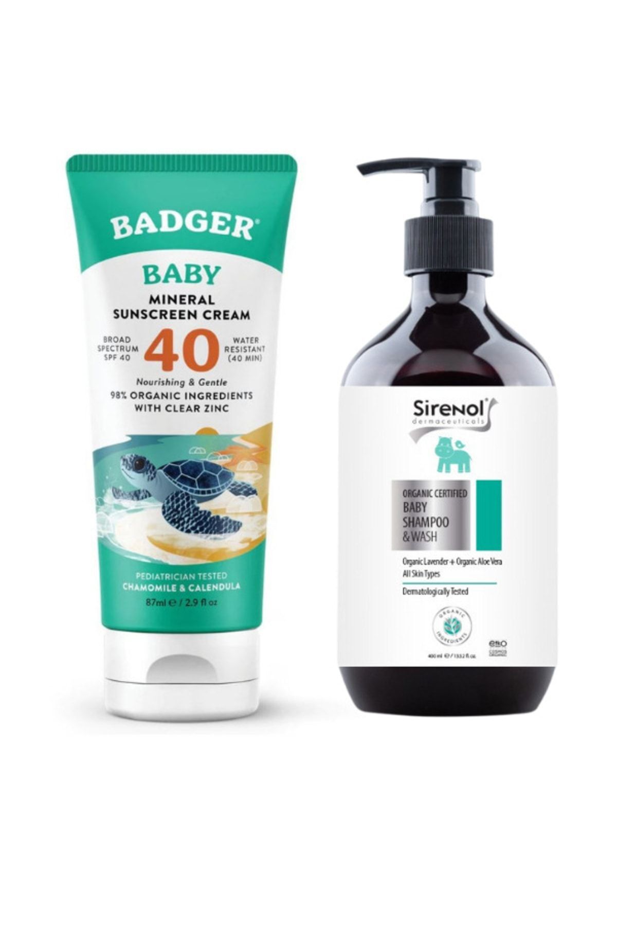 Sirenol Badger Baby Sunscreen Spf40 and Organic Baby Shampoo Set
