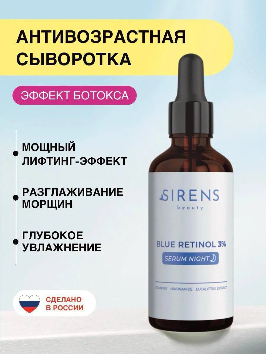 Подарите своей коже непревзойденное увлажнение и сияние с нашей уникальной ночной сывороткой от морщин Sirens Beauty, обогащенной высокоэффективными активными ингредиентами. Формула витаминной сыворотки включает в себя инновационный Голубой ретинол Lanablue, который оказывает эффект, сопоставимый с результатами ботокса, обеспечивая антивозрастной уход, который разглаживает все неровности и улучшает текстуру кожи. Борется с воспалениями и поддерживает молодость кожи благодаря уникальным способностям голубого ретинола. Кожа становится более упругой и ровной, а морщины заметно разглаживаются.