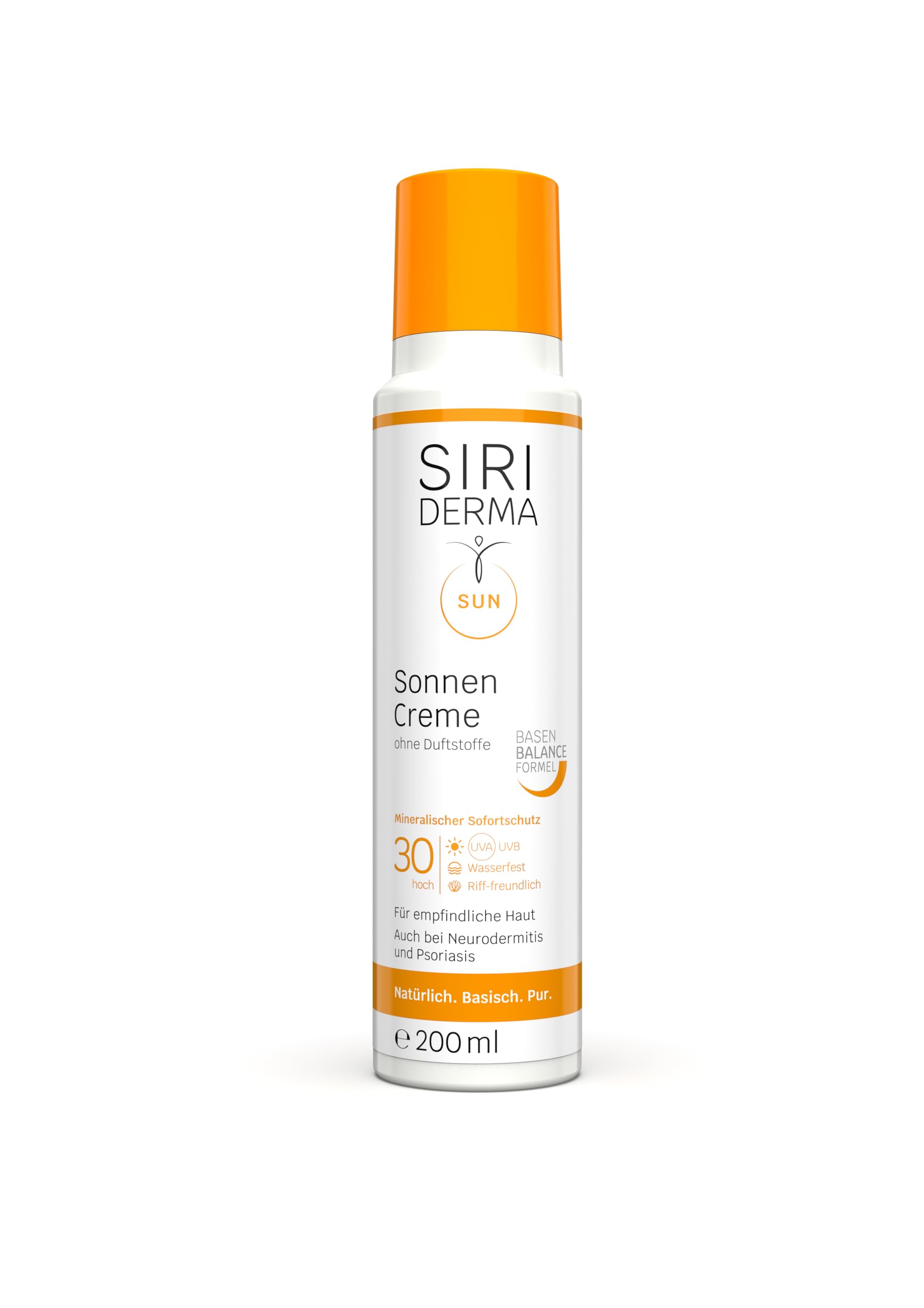 Do you suffer from dry skin, eczema, psoriasis, acne, allergic reactions, or do you want to combat the signs of aging? SIRIDERMA products gently and naturally care for your skin. SIRIDERMA develops and produces natural, vegan-certified skincare products. Driven by her own experience with eczema, the company began developing targeted skincare products for people with this condition in the mid-1990s. The specific skincare needs of people with sensitive and allergic skin have always been central to their daily work. SIRIDERMA's goal is to satisfy you with excellent quality, personalized skincare advice, and comprehensive service. All SIRIDERMA med, pure, and care cleansing and skincare products are certified vegan, made with purely plant-based ingredients, free from synthetic preservatives and alcohol, paraffin and wool wax, and naturally cruelty-free (animal testing is prohibited by law for cosmetic products). - Made in Germany. SIRIDERMA sunscreen is naturally alkaline and mineral-based. Benefit not only your skin but also the world's coral reefs and oceans, which remain unaffected by this sunscreen thanks to the absence of nanoparticles and chemical UV filters. Order SIRIDERMA sunscreen today with soothing protection for demanding and allergy-prone skin. Available with SPF 30 and in a 100ml bottle. Warning: Avoid intense midday sun. Apply before sun exposure. Reapply frequently to maintain sun protection, especially after swimming. Apply sunscreen generously. Applying too little reduces the level of protection. Protect babies and young children from direct sunlight. For babies and toddlers, use protective clothing and a high SPF sunscreen (SPF 25 or higher). Even high SPF sunscreens do not provide complete protection against UV rays. Avoid direct contact with textiles and hard surfaces to prevent discoloration. In case of contact with eyes, rinse immediately and thoroughly. INGREDIENTS Aqua, Zinc Oxide, Sesamum Indicum Seed Oil, Cocos Nucifera (Coconut) Oil, C14-22 Alcohols, Pentylene Glycol, Cetearyl Alcohol, Helianthus Annuus (Sunflower) Seed Oil, C12-20 Alkyl Glucoside, Cetearyl Glucoside, Tocopherol, Ethyl Fercoside. Lupulus Extract DIRECTIONS Apply generously to the body and face before sun exposure. To maintain protection, reapply regularly – especially after sweating or being in water. It is recommended to use the two-finger rule to apply enough sunscreen: two finger lengths (index and middle fingers covered) are approximately sufficient for one arm. Apply more if necessary. SAFETY WARNING None See moreSuitable for the whole family: SIRIDERMA SPF30 sunscreen is also suitable for children's skin and absorbs quickly, leaving no white residue and is sweat and water resistant. Ideal for year-round protection for the whole family. Reef and environmentally friendly: SIRIDERMA sunscreen does not contain chemical UV filters or microplastics that could harm coral reefs and other aquatic organisms. Zinc oxide is considered a UV filter that is safe for the sea and corals. Acid-base balance: Pure sesame and coconut oils strengthen the skin barrier. The alkaline formulation supports the skin's acid-base balance and promotes skin renewal. Particularly well tolerated: Thanks to its highly tolerable formulation and the absence of chemical UV filters, this sunscreen is ideal for sensitive skin and skin conditions such as eczema, psoriasis, and sun allergies. Effective sun protection: SIRIDERMA sunscreen offers effective and purely mineral protection against UVA and UVB rays with a sun protection factor of 30. Zinc particles reflect the sun's rays and provide instant protection.SIRIDERMA Crème solaire SPF30 - Protection minérale immédiate pour peaux sensibles - Basique, naturelle et hautement tolérée - Sans nanoparticules (sans parfum) - 200 ml Sans parfum 100 ml (1er Pack)DESCRIPTION DU PRODUIT DESCRIPTION DU PRODUIT Vous souffrez de peau sèche, d'eczéma, de psoriasis, d'acné, d'éruptions allergiques ou vous voulez faire quelque chose contre le vieillissement de votre peau ? Les produits SIRIDERMA prennent soin de votre peau en douceur et de manière tout à fait naturelle. SIRIDERMA développe et produit des soins de la peau à base naturelle et certifiés végétaliens. De par sa propre affection, le développement de produits de soin ciblés pour les personnes atteintes d'eczéma a commencé au milieu des années 90. Les besoins particuliers de soins des personnes ayant une peau sensible et allergique ont toujours été au centre du travail quotidien. L'objectif de SIRIDERMA est de vous satisfaire avec une excellente qualité, des conseils de soins individuels et un service complet. Tous les produits de nettoyage et de soin de la série SIRIDERMA med, pure et care sont certifiés végétaliens, fabriqués à base de plantes purement végétales, sans conservateurs synthétiques ni alcool, sans paraffine ni cire de laine, naturellement sans cruauté envers les animaux (pour les produits cosmétiques, les tests sur les animaux sont interdits par la loi). - Fabriqué en Allemagne. La crème solaire SIRIDERMA est naturellement alcaline et minérale. Faites du bien non seulement à votre peau, mais aussi aux récifs coralliens et aux océans du monde qui ne souffrent pas de ce soin solaire grâce à l'absence de nanoparticules et de filtres UV chimiques. Commandez dès aujourd'hui la crème solaire SIRIDERMA avec une protection apaisante pour les peaux exigeantes et sujettes aux allergies. Disponible avec indice de protection solaire 30 et dans l'emballage de 100 ml. Avertissement : éviter le soleil intense de midi. Appliquer avant l'exposition au soleil. Appliquer plusieurs fois pour maintenir la protection contre la lumière, surtout après avoir été dans l'eau. Appliquer généreusement la crème solaire. De faibles quantités d'application réduisent les performances de protection. Protéger les bébés et les jeunes enfants des rayons directs du soleil. Pour les bébés et les tou