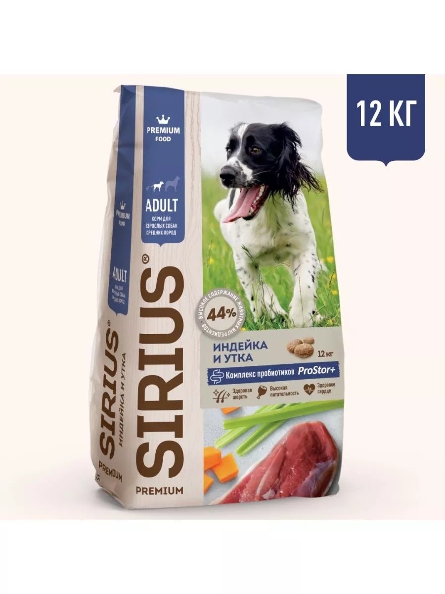 Корм для взрослых собак средних пород индейка утка имеет комфортный размер гранул (12-14 мм), приспособленный для поедания собаками средних пород. Препятствует чрезмерно быстрому заглатыванию корма, помогает очищать зубы.- Овощи в составеСбалансированный состав предполагает не только высококачественные мясные ингредиенты, но и ингредиенты растительного происхождения. Сельдерей, тыква и морковь содержат богатый комплекс витаминов (C, A, B, E), минералов и волокон, необходимых для здоровья питомца.- Содержание животного белка - 66%Некоторые незаменимые аминокислоты, необходимые для нормального функционирования организма питомца, содержатся только в мясе. Чем больше животного белка в корме, тем больше в нем незаменимых аминокислот и тем больше его питательность. Ваш питомец насыщается меньшим количеством корма.- Повышенная питательностьСобаки малых от природы имеют повышенную активность, что влечет за собой повышенный расход энергии и необходимость в его восполнении качественной калорийной пищей.