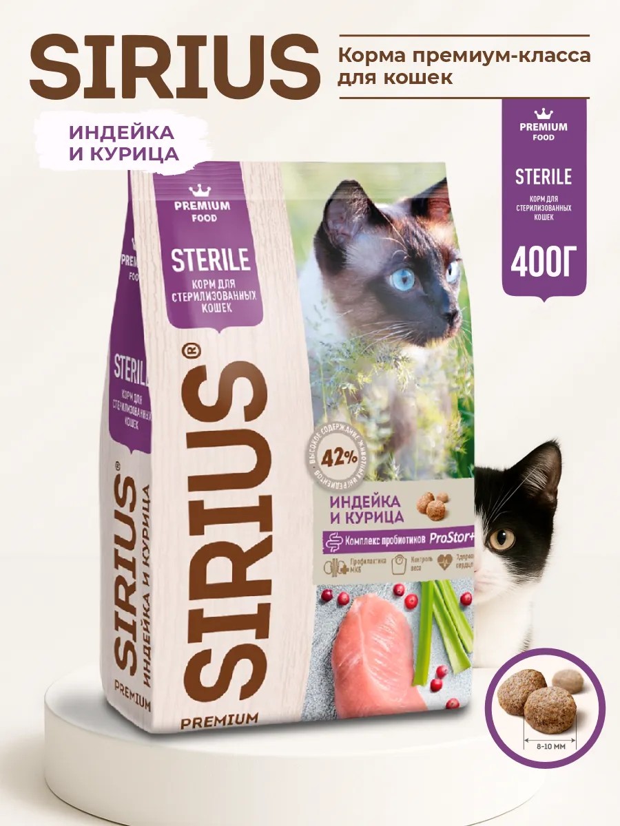 SIRIUS Корм для кошек, Индейка и Курица, 400гр