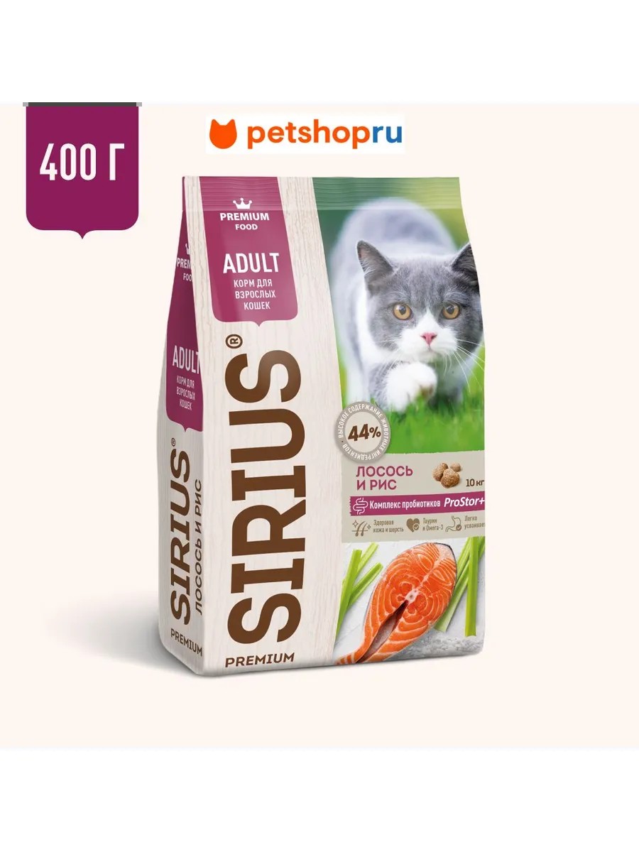 SIRIUS Сухой корм для кошек, лосось и рис, 400г