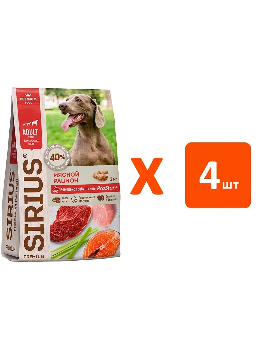 SIRIUS Корм сухой для собак мясной рацион 2 кг 4 шт