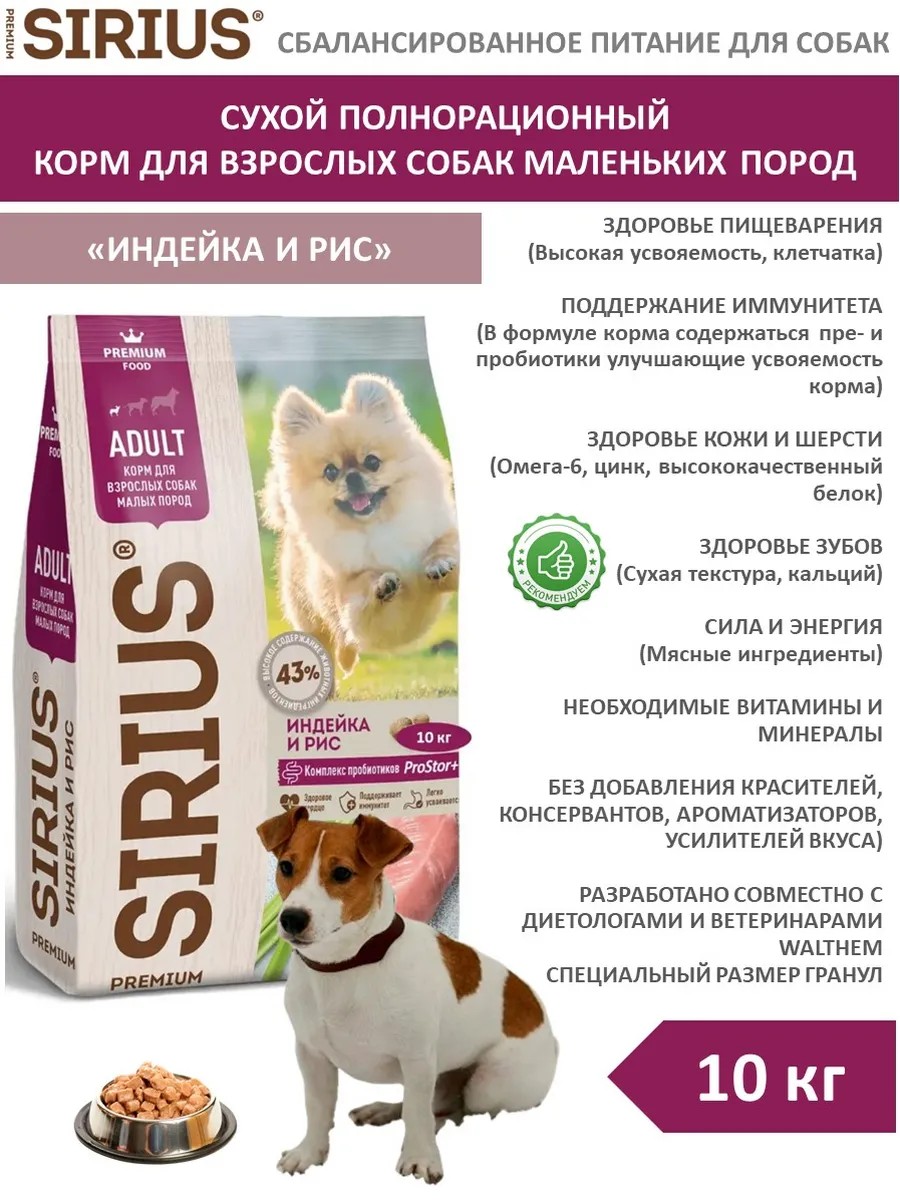 SIRIUS Сухой корм для собак малых пород индейка 10 кг