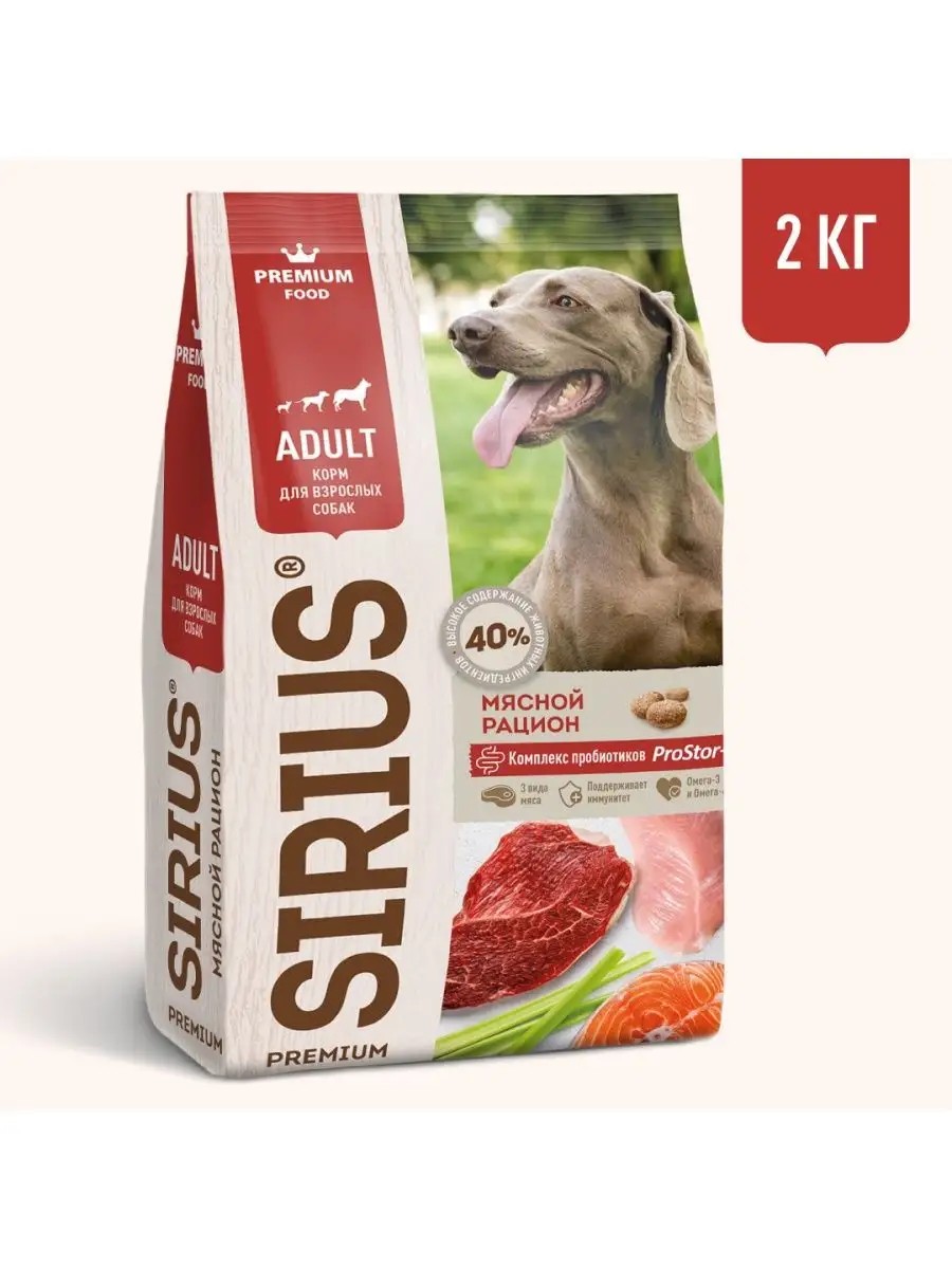 SIRIUS Сухой корм для собак с говядиной и птицей, 2кг