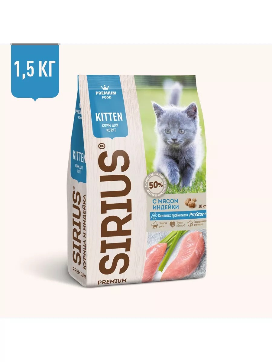 SIRIUS Сухой корм SIRIUS для КОТЯТ с индейкой 1,5кг