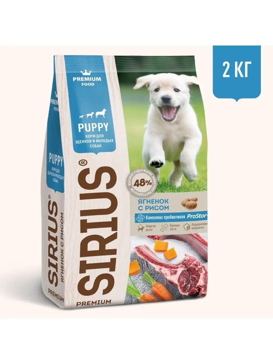 Sirius dry food is ideal for puppies of various breeds and provides complete nutrition at all stages of their development.