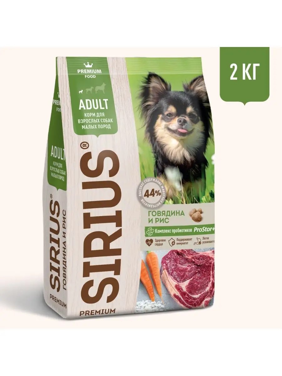SIRIUS Сухой корм для малых пород с говядиной 2 кг