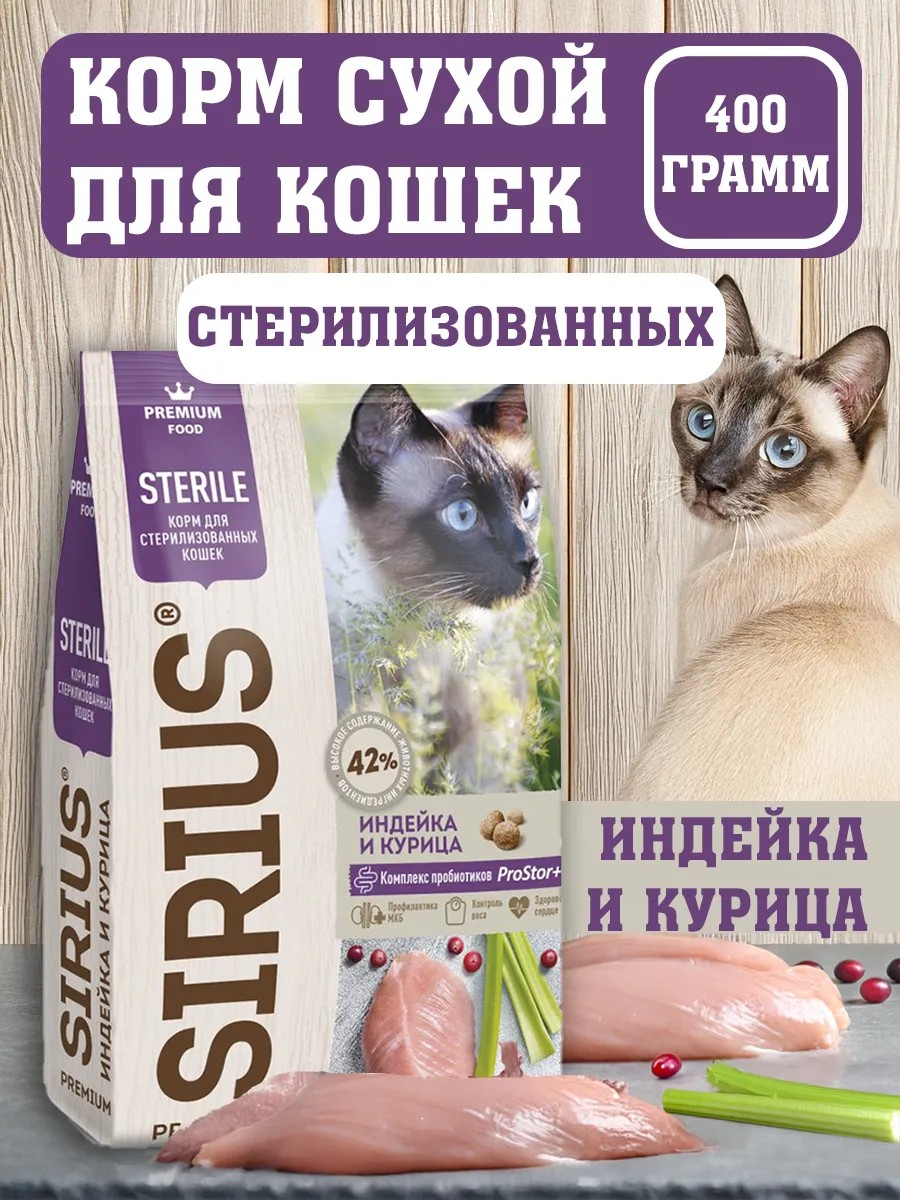 SIRIUS Сухой корм для стерилизованных кошек индейка и курица 400 г