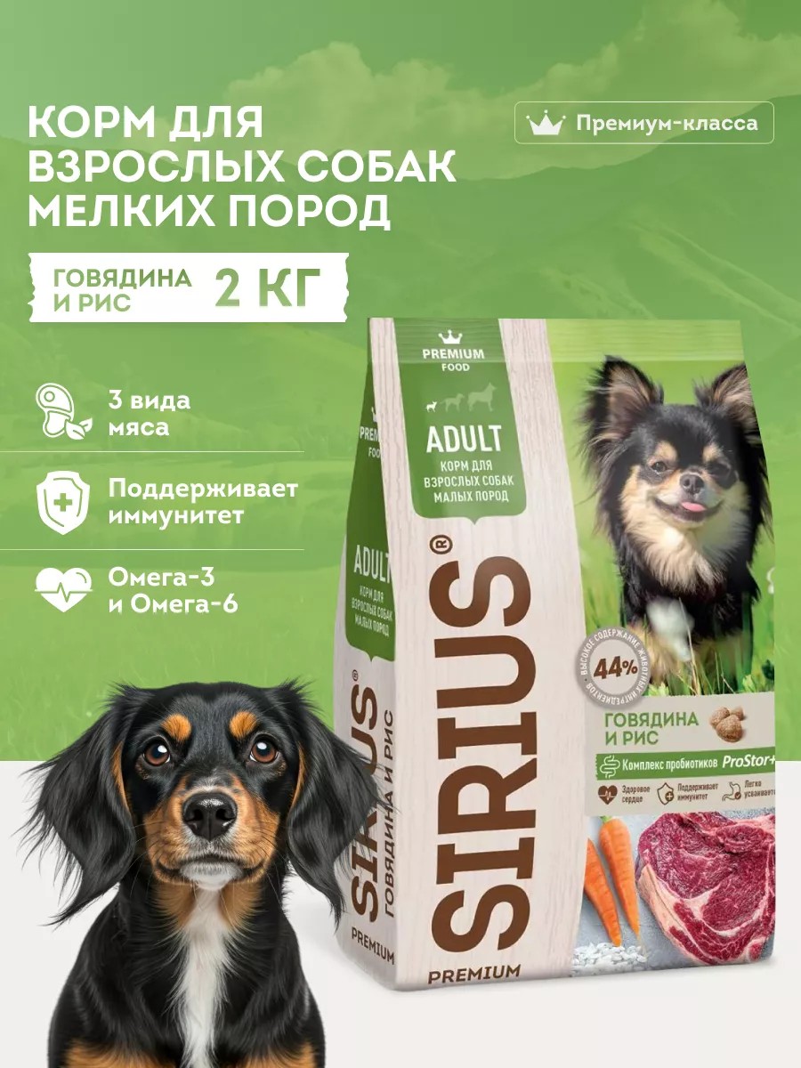 Sirius Сириус SIRIUS Корм для взрослых собак малых пород с говядиной, 2кг