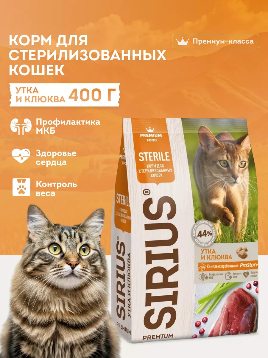 Sirius Сириус SIRIUS Корм для стерил кошек с уткой и клюквой, пак. 400г