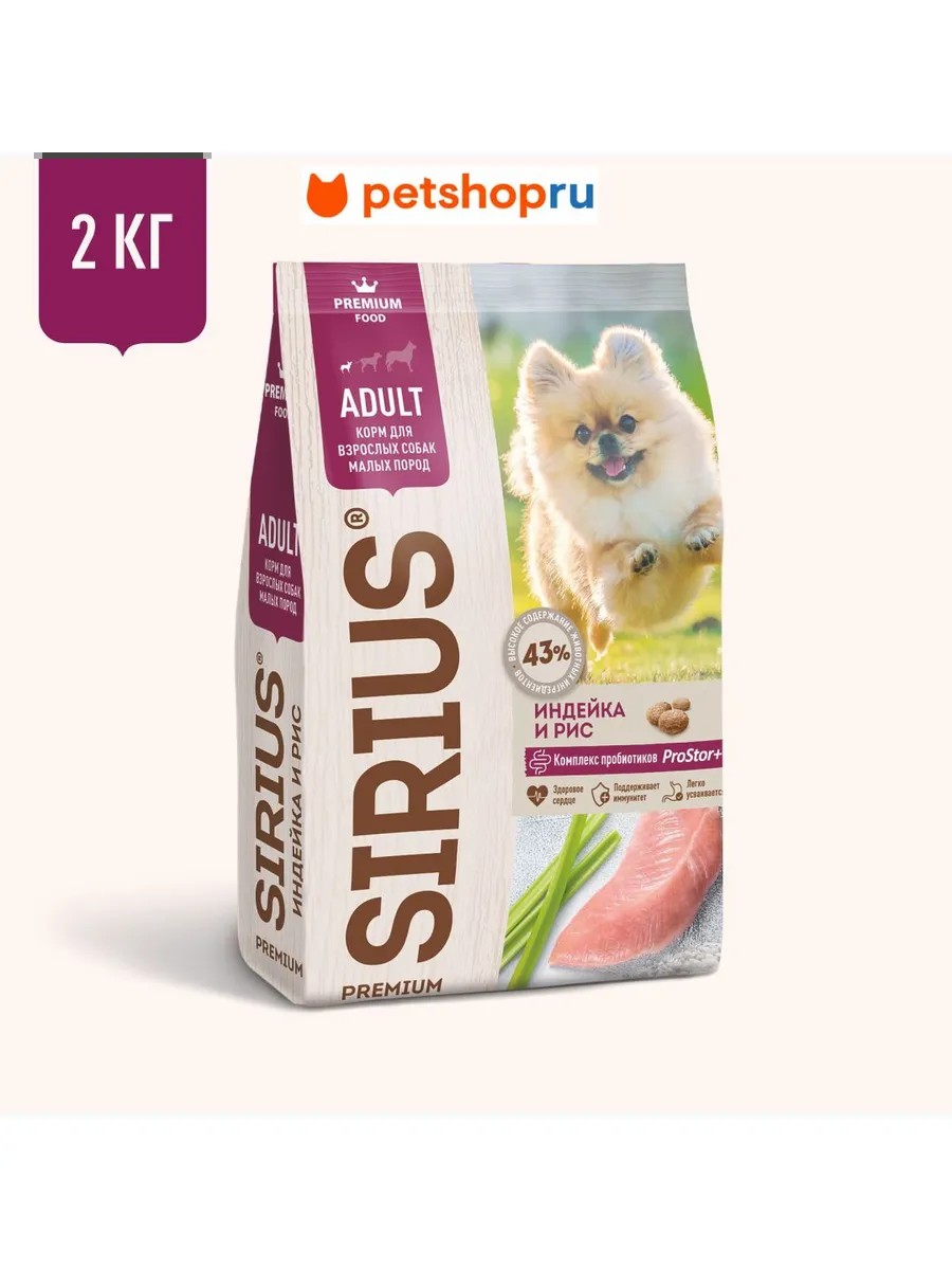 SIRIUS - сухой корм премиум класса для полноценного ежедневного рациона взрослых собак малых пород.