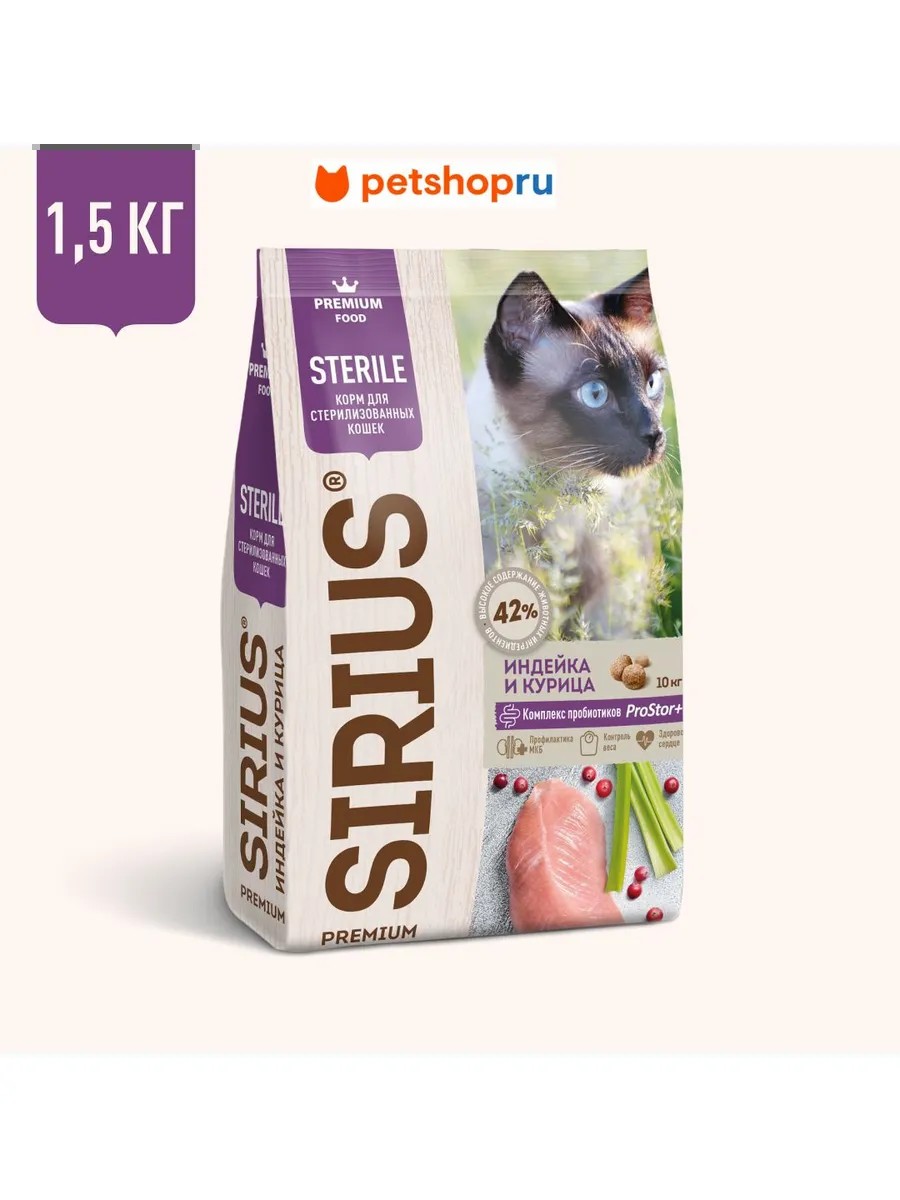 SIRIUS для стерилизованных кошек, индейка и курица, 1,5кг