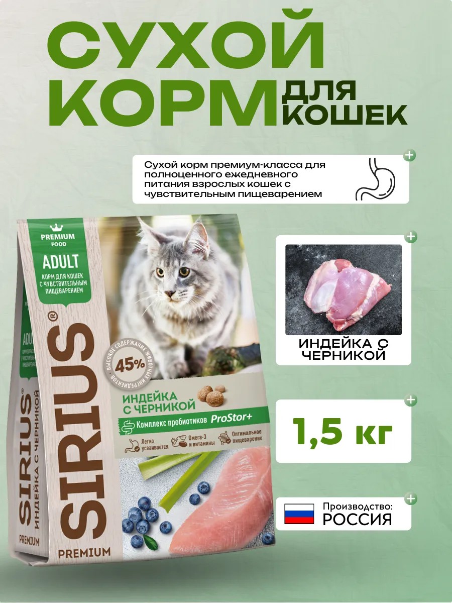Комплектация1 мешок корма Sirius для кошек 1.5 кг