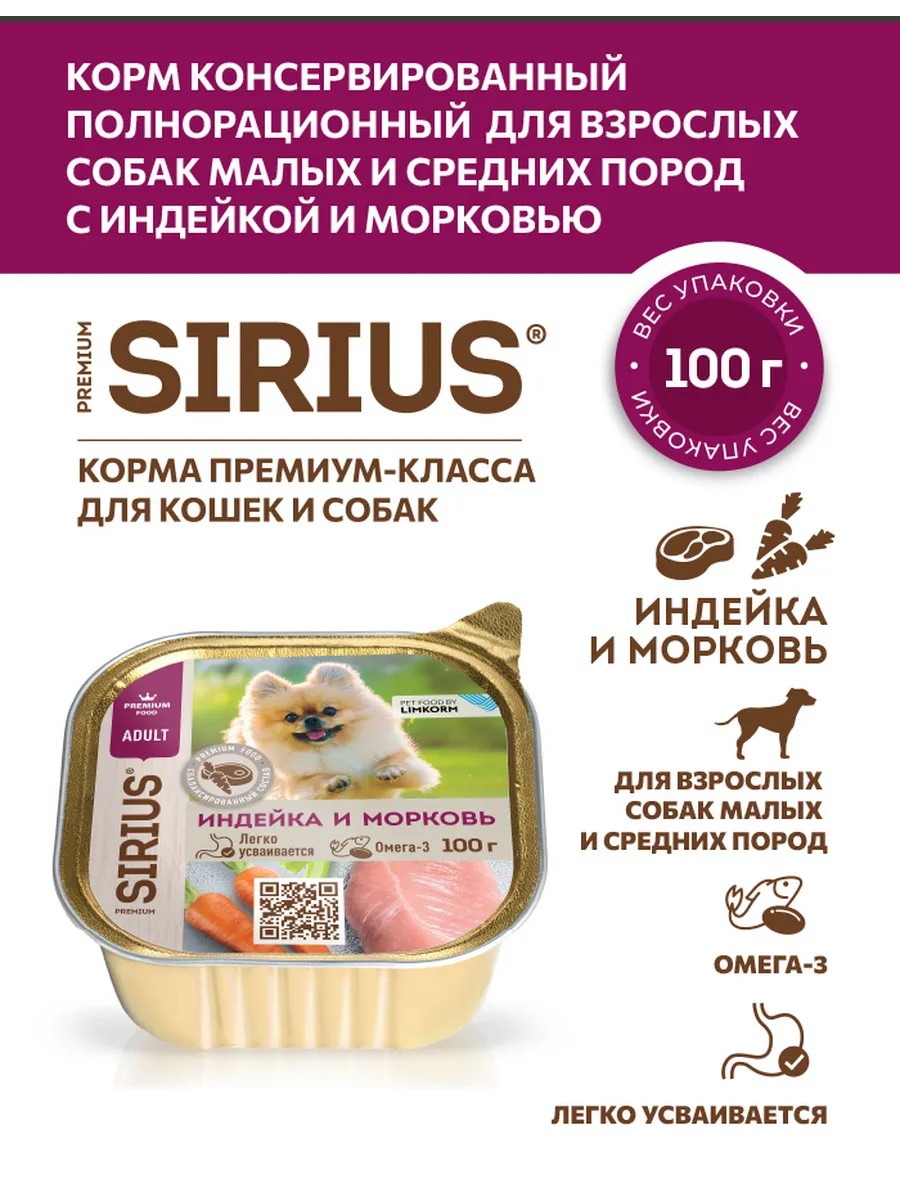 Влажный корм SIRIUS (Сириус) для собак – это современный продукт премиум – класса, изготовленный из натуральных мясных ингредиентов, обогащенный питательными веществами и минералами, которые обеспечивают полноценное и сбалансированное питание вашего питомца.