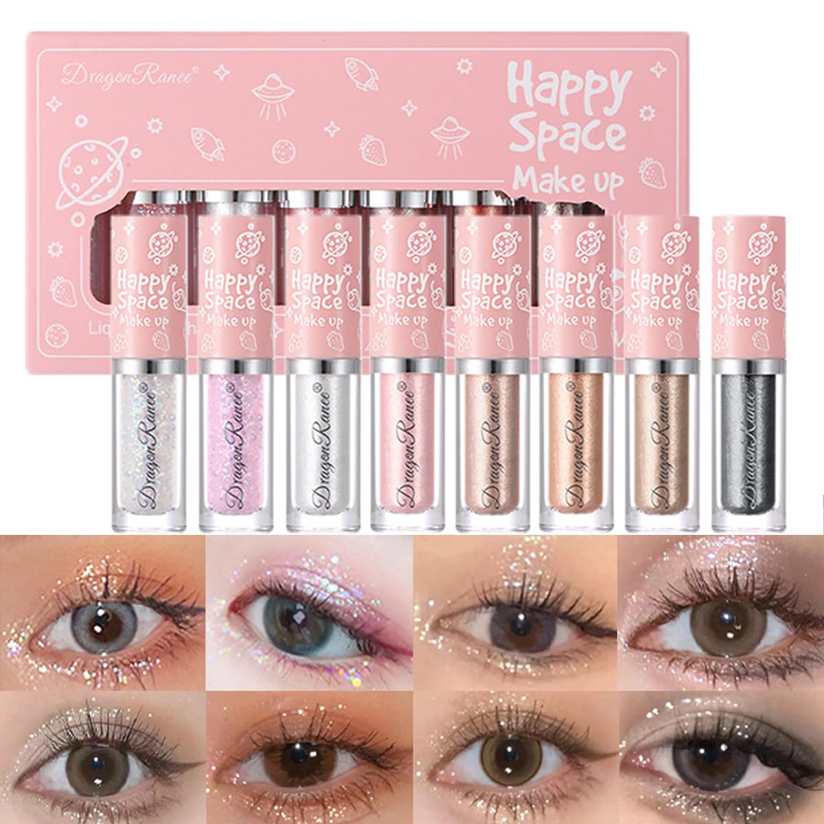 Perfect Gift This glitter eyeliner liquid eyeshadow can be used as a gift for good friends and wife, family. It will be an ideal for girls or ladies on daily use, birthday party, cosmetic show, dance party and wedding makeup and so on. Easy to Use No need to touch the eyeshadow. Use fingers or a flat eyeshadow brush. Apply alone or over the eyeshadow or lash line in the middle of the eye to create a sleepy silkworm, draw the eyeliner and create a stunning look! This pressed glitter pigmented eyeshadow can be applied to eyes, eyebrows, lips, cheeks, face . Multi-use Eyeshadow Wear it alone or as an eyeshadow for an extra hint of glamour. Can be used as eyeshadow, eyeliner, highlighter or layered over powder eyeshadow, lipstick and blush. The possibilities are pretty endless and get the flawless look!. Highly Pigmented These glitter formulas are all about high impact, sparkle without messy fallout and flaking. Spreads easily all over your eyelid in one swipe that you can blend with fingers or leave alone. Dries quickly that won't sink into creases or fade after a few hours. Liquid Glitter Eyeshadow Set This liquid glitter eyeshadow set contains 8 colors: 01 Clear Glue Glitter, 02 Light Pink Glitter, 03 Silver, 04 Kawaii Pink, 05 Brown, 06 Champagne, 07 Glitter Brown, 08 Black. The highly pigmented color-adhesive formula delivers sumptuous eyes with incredible shine, suitable not only for everyday makeup, but also for parties and special events.Cadeau parfait Ce fard à paupières liquide à eye-liner scintillant peut être utilisé comme cadeau pour les bons amis et la femme, la famille. Ce sera un idéal pour les filles ou les dames sur l'utilisation quotidienne, fête d'anniversaire, spectacle cosmétique, soirée de danse et maquillage de mariage et ainsi de suite. Facile à utiliser Pas besoin de toucher le fard à paupières. Utilisez les doigts ou un pinceau plat fard à paupières Appliquer seul ou sur le fard à paupières ou sur la ligne des cils au milieu de l'œil pour créer un ver à soie endormi, dessiner l'eye-liner et créer un look époustouflant! Ce fard à paupières pigmenté à paillettes pressé peut être appliqué sur les yeux, les sourcils, les lèvres, les joues, le visage . Fard à paupières multi-usage Portez-le seul ou comme fard à paupières pour un soupçon supplémentaire de glamour. Peut être utilisé comme fard à paupières, eye-liner, surligneur ou superposé sur le fard à paupières en poudre, le rouge à lèvres et le fard à joues. Les possibilités sont assez infinies et obtiennent le look impeccable!. Hautement pigmenté Ces formules scintillantes sont toutes sur les chocs élevés, l'étincelle sans retombées salissantes et la desquamation. Se propage facilement sur toute votre paupière en un seul coup que vous pouvez mélanger avec les doigts ou laisser seul. Sèche rapidement qui ne s'enfoncera pas dans les plis ou ne s'estompera pas après quelques heures. Ensemble de fards à paupières à paillettes liquides Cet ensemble de fards à paupières à paillettes à paillettes liquides contient 8 couleurs: 01 paillettes de colle claire, 02 paillettes rose clair, 03 argent, 04 rose kawaii, 05 marron, 06 champagne, 07 brun paillettes, 08 noir. La formule adhésive aux couleurs hautement pigmentées offre des yeux somptueux d'un éclat incroyable, adaptée non seulement au maquillage quotidien, mais aussi aux fêtes et événements spéciaux.