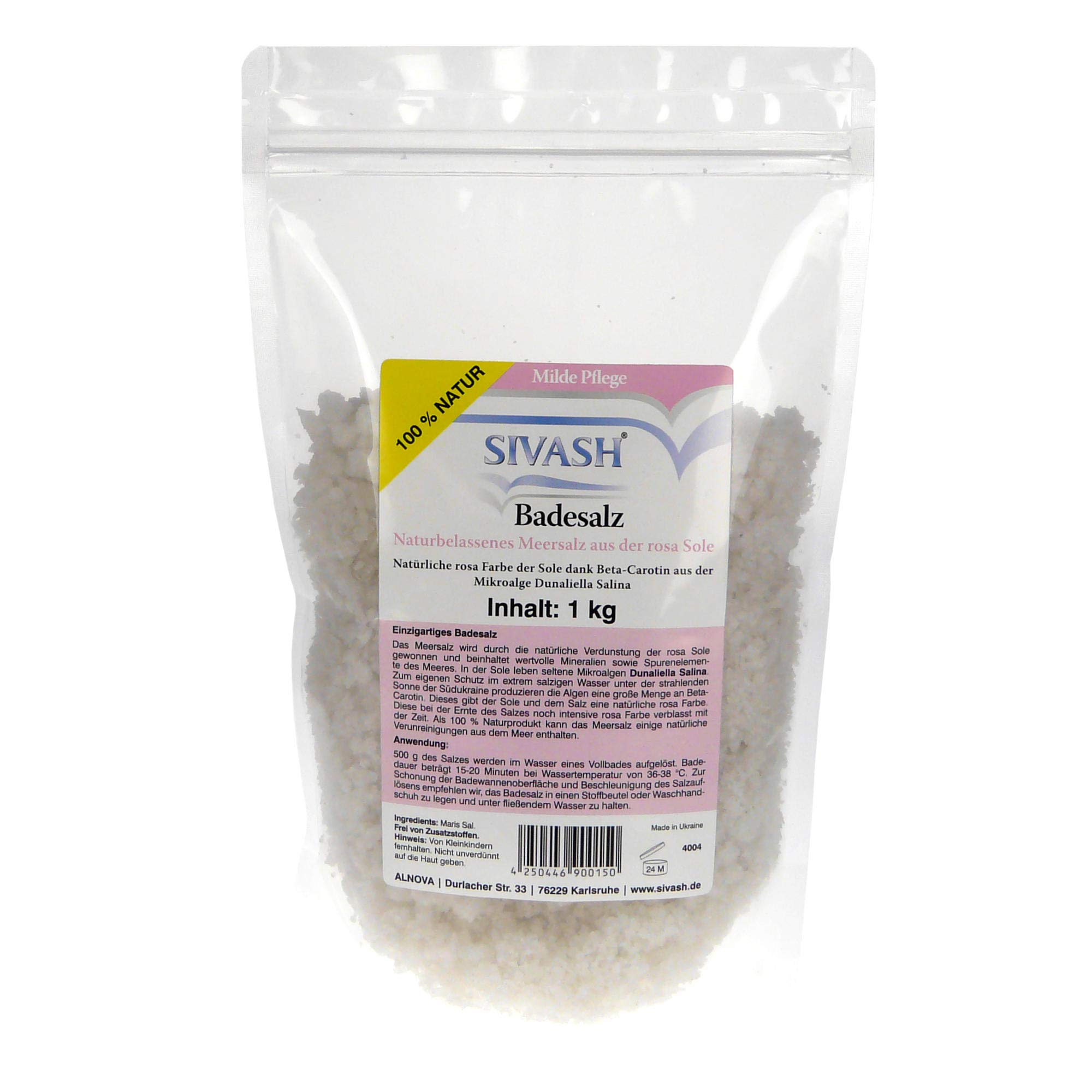 Even cheaper in larger packages - Search "sivash" in the search field! Contains valuable minerals and trace elements from the sea such as iodine, magnesium, etc. Very gentle. It is therefore particularly suitable for skin care for atopic dermatitis and psoriasis. Natural, uncrushed, unwashed, or dried. High quality thanks to a special multi-stage natural extraction process. The freshly harvested salt crystals have a natural pink color due to the beta-carotene from the microalga Dunaliella Salina. The pink color fades over time.