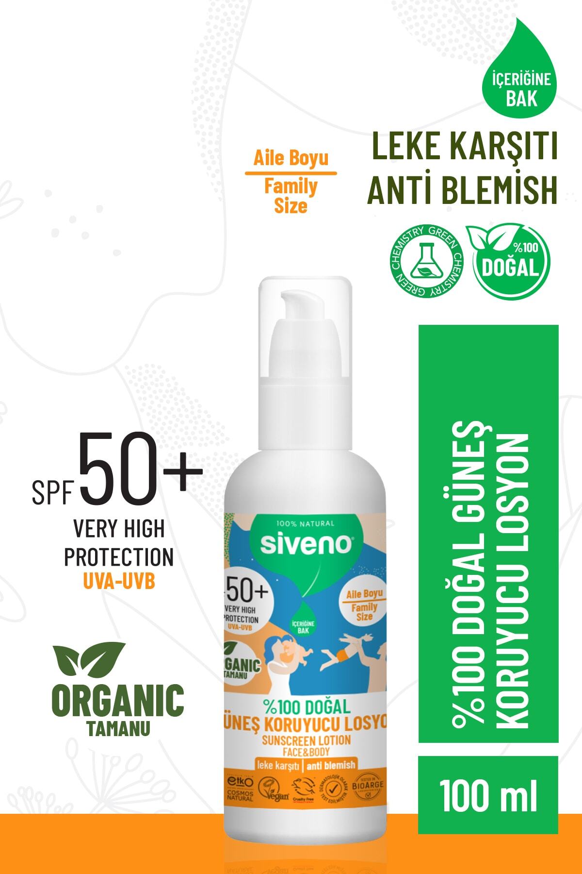 Siveno 0 Natural and Organic Tamanu Oil Sunscreen Lotion with Mineral Filter for the Whole Family 50 Spf 100 ml