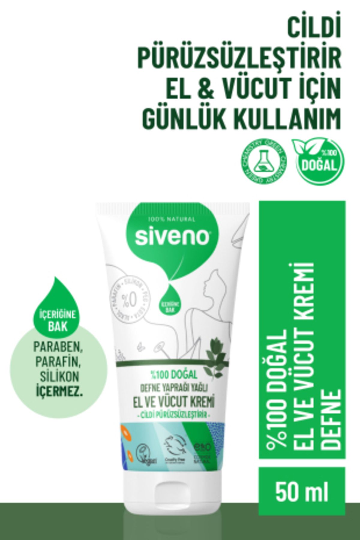 Siveno 100 Dogal El Ve Vücut Kremi Defne Pürüzsüzlestirici Yatistirici Onarici Nemlendirici Vegan 50ml