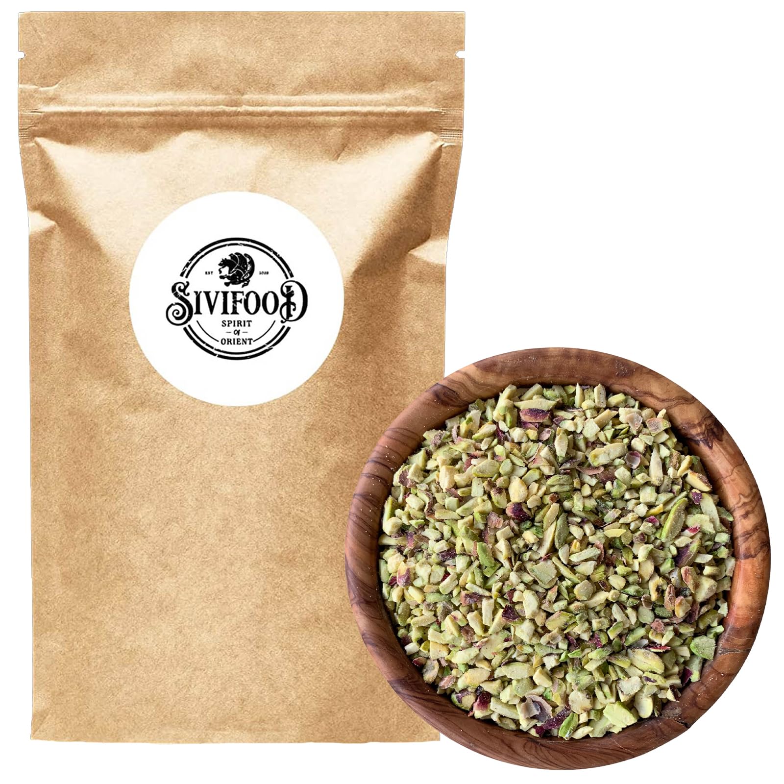 SIVIFOOD pistachios, roughly chopped This offer is composed of coarsely chopped pistachios of natural origin. Pistachios grow like grapes on pistachio trees up to 12 meters tall, which are part of the sumac family and are native to the Middle East. Our pistachios are carefully selected and finely chopped. They impress with their full-bodied, aromatic, nutty and slightly creamy taste and their bright green color. We use only natural ingredients, so our pistachios are free from artificial additives or preservatives. Pistachios are one of the most versatile nuts and have a wide variety of kitchen uses for cooking and baking. Chopped pistachios are ideal as a garnish for salads, muesli, bowls, porridge or yogurt. Finely chopped pistachios are easy to blend and add a slight crunch to foods. SIVIFOOD chopped pistachios are also a real enrichment when added to a smoothie or made into delicious pistachio ice cream. Of course, you can also enjoy pistachios as a classic sofa snack. However, our chopped pistachios are most often used in baking and are not only used in Turkish baklava, but also in various variations of cakes and cookies. On the one hand, you can use the pistachios in the dough and on the other hand, you can also use them perfectly to decorate and decorate your homemade delicacies. Other ideas for use: pistachio cream or pistachio pesto. Pistachio kernels are suitable for a vegetarian or vegan diet and are an important source of protein for the body. Pistachios are a low-calorie nut that is high in protein and yet very filling, making them ideal for a diet. They also contain many other healthy nutrients such as potassium, phosphorus, beta-carotene, vitamins B1, B6 and magnesium. For portioned use, we send our chopped pistachios in an eco-friendly, resealable aromatic bag. You should always store the pistachios in our closed aromatic bag in a dry, cool place and away from light. Average nutritional values per 100g: Energy Energy 2587kJ 622kcal Fat Total fat 54g of which saturated fatty acids 5.5 g Carbohydrates Carbohydrates 8.9g including sugar Sugar 4.2g Proteins Proteins 19.8g Salt Salt 0.01g Dietary fiber Fiber 10g Attention : Pistachios may occasionally contain small pieces of shell, so consume them with caution. INGREDIENTS PistachiosLONG-LASTING FRESHNESS - For maximum shelf life and portioned use, our pistachios are shipped in a resealable aromatic bag. To ensure long-lasting freshness, we recommend always storing the pistachios in a sealed bag in a cool, dry place. VERSATILE APPLICATION - Our chopped pistachios can be used in many ways, not only as a snack or addition to trail mix or nut mixes, but also as a topping in muesli, in pistachio cream, or to refine desserts. Chopped pistachios are, of course, particularly popular in baking and are used not only in Turkish baklava, but also in various cake and biscuit variations as a baking ingredient and as decoration. DELICIOUS AND NATURAL - Our pistachios are free from artificial flavors and additives. PREMIUM QUALITY - Coarsely chopped natural pistachios for versatile use in cooking and baking or for snacking. Our coarsely chopped pistachios undergo a complex cleaning process and therefore contain almost no pieces of shell and relatively little skin. Pistaches SIVIFOOD hachées grossièrement Cette offre est composée de pistaches d'origine naturelle hachées grossièrement. Les pistaches poussent comme des raisins sur des pistachiers atteignant 12 mètres de haut, qui font partie de la famille des sumacs et sont originaires du Moyen-Orient. Nos pistaches sont soigneusement sélectionnées et finement hachées. Ils impressionnent par leur goût corsé, aromatique, de noisette et légèrement crémeux et leur couleur vert vif. Nous utilisons uniquement des ingrédients naturels, nos pistaches sont donc exemptes d'additifs artificiels ou de conservateurs. Les pistaches font partie des noix les plus polyvalentes et ont une grande variété d'utilisations en cuisine pour la cuisine et la pâtisserie. Les pistaches hachées sont idéales comme garniture pour les salades, le muesli, les bols, le porridge ou le yaourt. Les pistaches finement hachées sont faciles à mélanger et donnent un léger croquant aux aliments. Les pistaches hachées de SIVIFOOD sont également un véritable enrichissement lorsqu'elles sont ajoutées à un smoothie ou transformées en une délicieuse glace à la pistache. Bien sûr, vous pouvez également déguster les pistaches comme collation classique sur le canapé. Cependant, nos pistaches hachées sont le plus souvent utilisées en pâtisserie et ne sont pas seulement utilisées dans les baklava turcs, mais aussi dans diverses variantes de gâteaux et de biscuits. D'une part, vous pouvez utiliser les pistaches dans la pâte et d'autre part, vous pouvez également les utiliser parfaitement pour décorer et décorer vos délices maison. Autres idées d'utilisation : crème de pistache ou pesto de pistache. Les noyaux de pistaches conviennent à un régime végétarien ou végétalien et constituent une source importante de protéines pour l'organisme. Les pistaches sont des noix faibles en calories, riches en protéines et pourtant très rassasiantes, ce qui les rend idéales pour un régime. Ils contiennent également de nombreux autres nutriments sains tels que le potassium, le phosphore, le bêta-carotène, les vitamines B1, B6 et le magnésium. Pour une utilisation en portions, nous envoyons nos pistaches hachées dans un sachet aromatique respectueux de l'environnement et refermable. Vous devez toujours conserver les pistaches dans notre sachet aromatique fermé dans un endroit sec, frais et à l'abri de la lumière. Valeurs nutritionnelles moyennes pour 100g : Énergie Énergie 2587kJ 622kcal Matières grasses Matières grasses totales 54g dont acides gras saturés 5,5 g Glucides Glucides 8,9g dont sucre Sucre 4,2g Protéines Protéines 19,8g Sel Sel 0,01g Fibres alimentaires Fibres 10g Attention : Le
