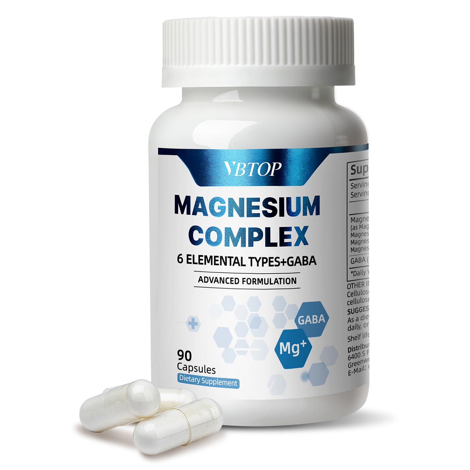 Better Absorption: This formula uses six highly bioavailable forms of magnesium, contains no unnecessary fillers, is non-GMO, and is a magnesium supplement suitable for both men and women. It is easy to digest—even those with sensitive stomachs can take it with peace of mind and enjoy the benefits of magnesium without any gastrointestinal discomfort—making it an ideal choice for your daily healthy lifestyle. Sleep and Relaxation: If you have difficulty falling asleep or wake up feeling tired, this soothing magnesium complex is designed to help you relax and feel more at ease before bed. Its easily absorbed formula will become your new bedtime ritual, helping you achieve deep sleep and start the day in a more peaceful and calm state. Heart Health and Bone Muscle Support: Our magnesium complex capsules help maintain normal heart function, support bone and muscle health, and support natural balance and mobility. Each Capsules delivers health benefits, supporting nutrient intake and promoting cellular energy production, Your heart and energy are central to your daily well-being. Magnesium, known as the "master mineral," is an essential microelement long considered a key nutrient due to its vital role in over 300 biochemical reactions. Magnesium supplements help maintain overall health. VBTOP Six-Fold Magnesium Complex 420 mg (Glycinate Magnesium, Magnesium Oxide,Magnesium Malate, Magnesium Taurate, Magnesium Citrate, Magnesium L-threonate ) Each Capsules is chelated or highly absorbable for maximum bioavailability.