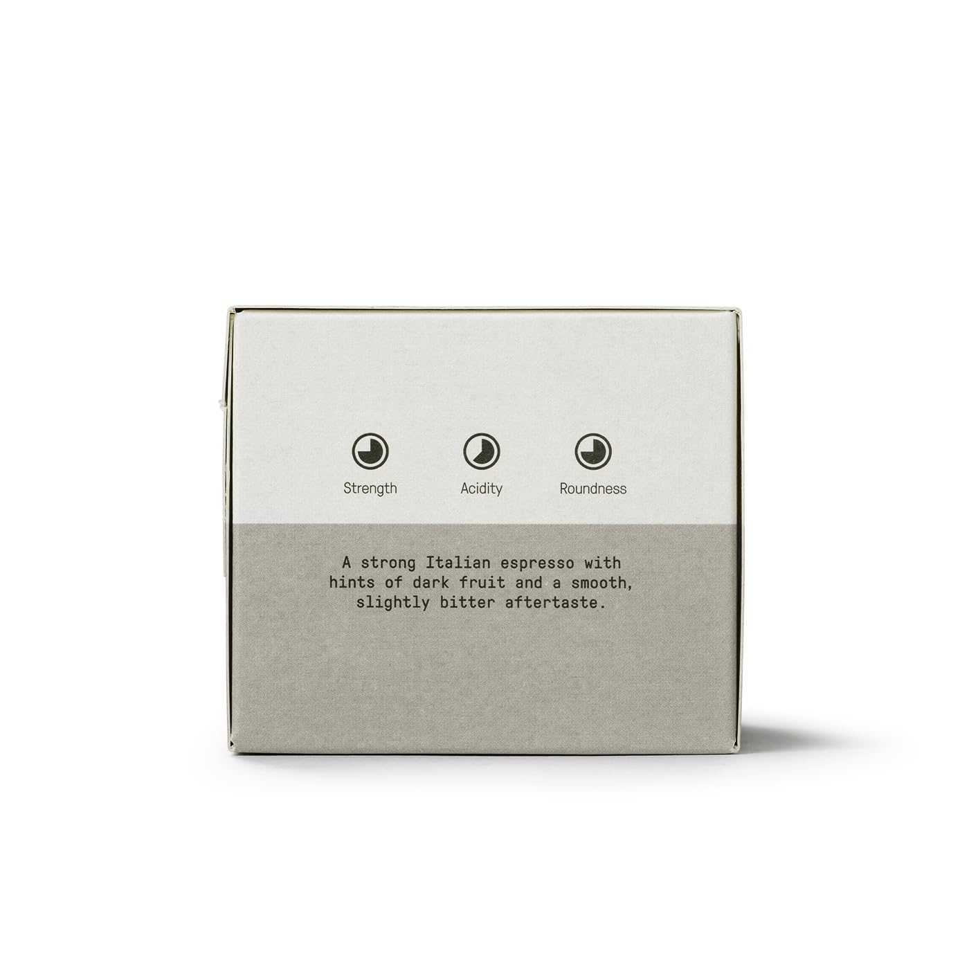 100 organic and Fairtrade coffee, packaged in our compostable capsule. A strong Italian espresso with a hint of dark fruit and a smooth, rich, and slightly bitter aftertaste. No. 2 is made from a blend of Arabica beans from Peru, Mexico, and Honduras. Intensity 4 5BLEND: The finest Arabica beans from Peru, Mexico, Honduras, and Indonesia. ESPRESSO NO. 2: A strong Italian espresso with notes of dark fruits. FAIRTRADE CLIMATE POSITIVE: Sustainable for people, nature, and the environment. Boxes of 10 or 100 capsules: All blends are available in boxes of 10 and 100 capsules. Large boxes mean less packaging and fewer deliveries. MATERIAL: Natural fiber coffee capsules, 100 organic Arabica coffee, Fairtrade and Climate Positive, delicious taste. Café 100 biologique et issu du commerce équitable, conditionné dans notre capsule compostable. Un espresso italien fort avec un soupçon de fruits noirs et un arrière-goût doux, riche et légèrement amer. Le N 2 est fabriqué à partir d'un mélange de grains Arabica du Pérou, du Mexique et du Honduras. Intensité 4 5MÉLANGE : Les meilleurs grains d'Arabica du Pérou, du Mexique, du Honduras et d'Indonésie. ESPRESSO N 2 : Un espresso italien fort avec des notes de fruits noirs. COMMERCE ÉQUITABLE CLIMAT POSITIF : durable pour les personnes, la nature et l'environnement. Boîtes de 10 ou 100 capsules : Tous les mélanges sont disponibles en boîtes de 10 et 100 capsules. Les grandes boîtes signifient moins d'emballages, moins de livraisons. COMPOSIBLE : capsules de café en fibres naturelles, café Arabica 100 biologique, commerce équitable et climat positif, goût délicieux.
