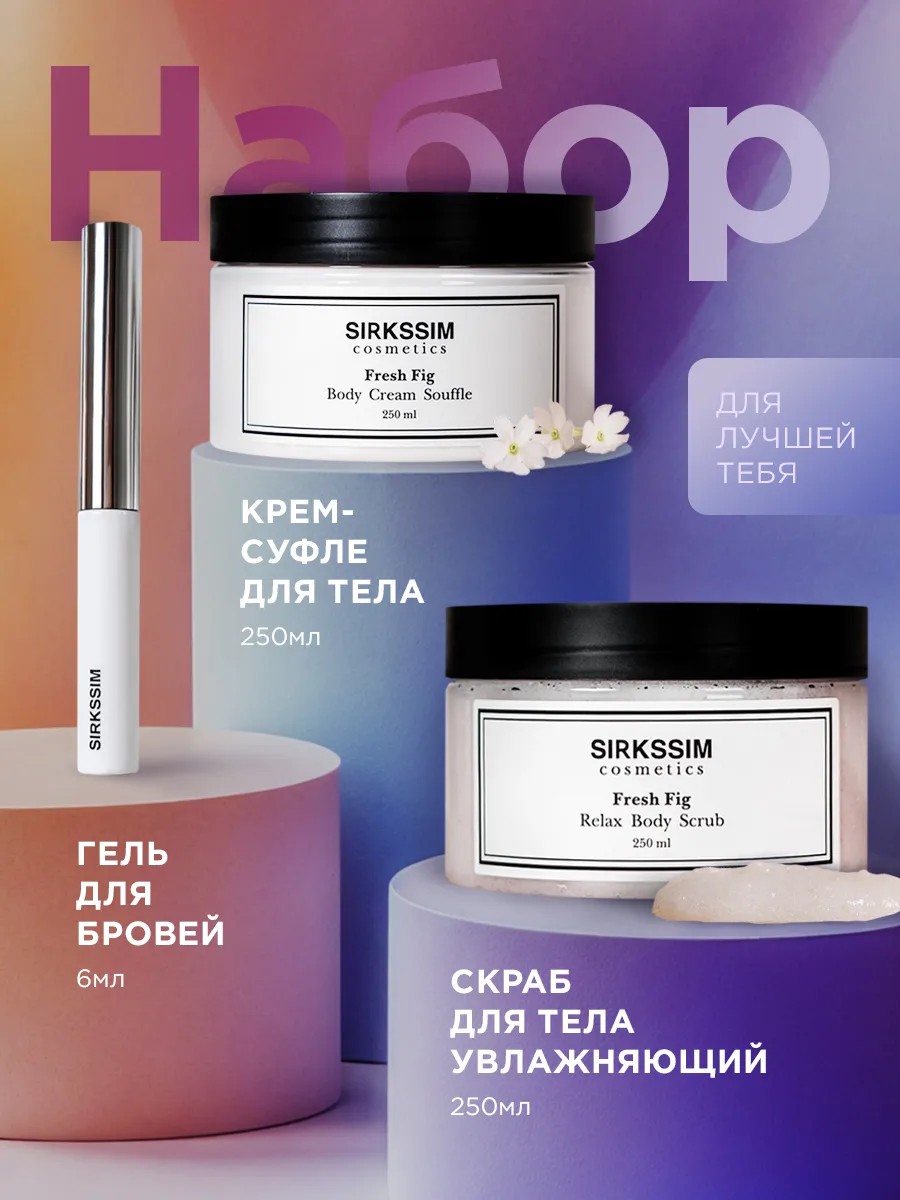 | Комплектация | Увлажняющий крем-баттер для тела-1шт; Гель для фиксации и роста бровей прозрачный -1шт; Скраб-бальзам увлажняющий с ароматом свежего инжира -1 шт |