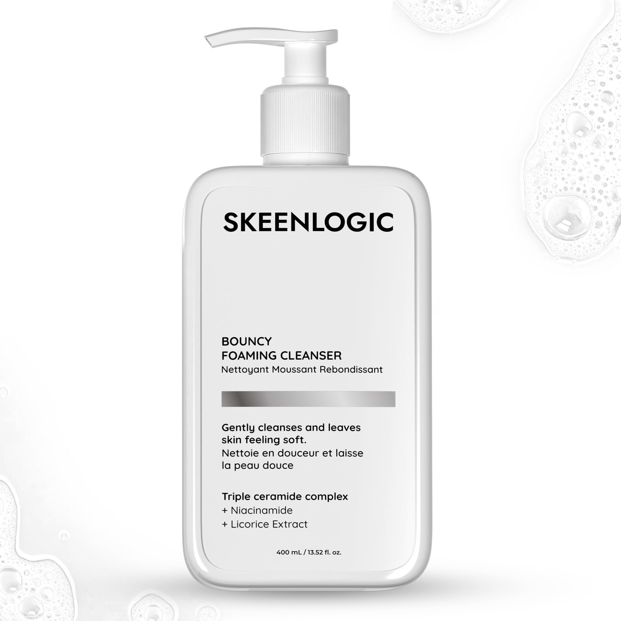 Skeenlogic Gentle Foaming Cleanser Gentle Face Wash for Men & Women with Licorice Niacinamide & Ceramides for All Skin Types Non-Comedogenic 400ml