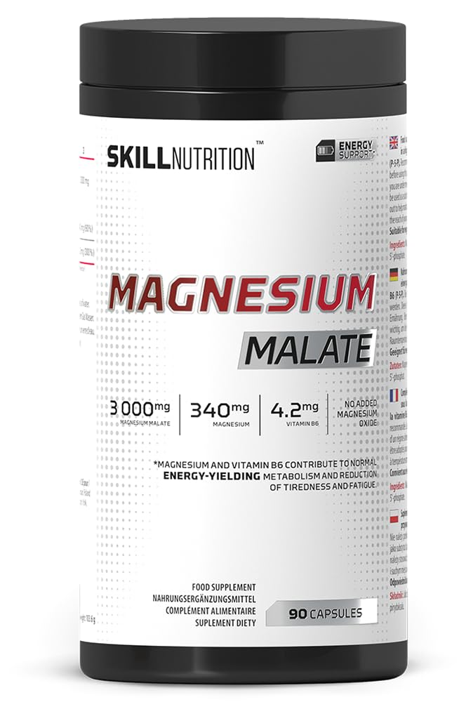 SKILL Nutrition Malate de Magn sium avec Vitamine B6 | 90 g lules | Active P-5-P 340 mg par portion | 3000 mg de malate hautement assimilable nergie muscles syst me nerveux | sans oxyde