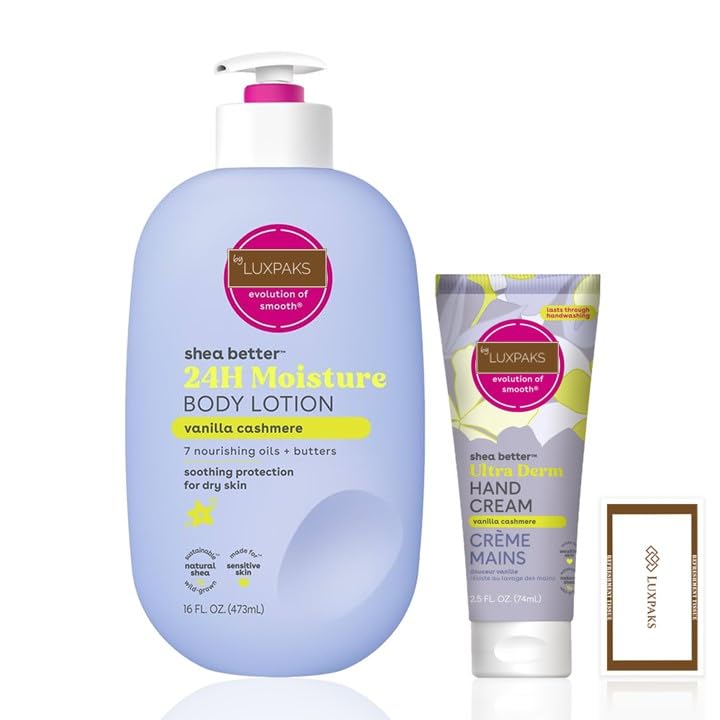 Give your skin the hydration it deserves with the LUXPAKS Wipe Wipe Body and Hand Lotion Set with Vanilla Cashmere. This self-care set contains: 1 x Shea Better Body Lotion (473.6g) for daily deep hydration, 1 x Shea Better Hand Cream (70.9g) for instant portable hydration, 1 x LUXPAKS eco-friendly wipe single use and perfect for: travel or retouching. Both lotions are made from 100 natural shea butter and a blend of 7 nourishing oils that provide light, non-greasy hydration. The rich vanilla cashmere scent has soft notes of whipped vanilla, cozy caramel and musk, creating a warm, luxurious scent that lasts. Whether you're treating yourself or giving to someone special, this cruelty-free vegan set is perfect for everyday skin care, Christmas stockings, travel kits or holiday beauty gifts. Skin care has never been felt or felt betterVegan and skin-friendly: dermatologically tested and hypoallergenic. Free from parabens, phthalates, animal testing and gluten-free. Gentle for dry or sensitive skin. Practical on the go: contains compact travel hand lotion and LUXPAKS soft cloth, ideal for handbag, office, TSA-friendly toiletry bags. Signature fragrance care: Comforting scent with whipped vanilla, soft musk and caramel for soft skin and incredible scent. Long-lasting hydration: the fast-absorbing and grease-free formula provides 24 hours of moisture for hands and body with natural shea butter and 7 nourishing oils. Complete moisturizing set: contains 473.6 g of body lotion 70.9 g of hand cream with vanilla cashmere, plus an eco-friendly LUXPAKS wipe for skin care on the go.Huidverzorgingsset: bevat E.O.S Vanilla Cashmere Lotion voor lichaam en handen, vochtinbrengende crème met sheaboter met doekje LuxPaks Geef je huid de hydratatie die het verdient met de LUXPAKS Wipe Wipe Body and Hand Lotion-set met Vanilla Cashmere Deze zelfverzorgingsset bevat: 1 x Shea Better Body Lotion (473,6 g) voor dagelijks diep hydrateren, 1 x Shea Better handcrème (70,9 g) voor onmiddellijke draagbare hydratatie, 1 x LUXPAKS milieuvriendelijk doekje eenmalig gebruik en perfect voor: reizen of retoucheren. Beide lotions zijn gemaakt van 100 natuurlijke sheaboter en een mengsel van 7 voedende oliën die een lichte, niet-vette hydratatie bieden. De rijke vanille-kasjmiergeur heeft zachte tonen van opgeklopte vanille, gezellige karamel en musk, waardoor een warme, luxueuze geur ontstaat die lang meegaat. Of je nu jezelf trakteert of een speciaal iemand geeft, deze dierproefvrije veganistische set is perfect voor dagelijkse huidverzorging, kerstkousen, reiskits of schoonheidscadeaus voor de vakantie. Huidverzorging wordt nooit zo goed gevoeld of gevoeldVeganistisch en huidvriendelijk: dermatologisch getest en hypoallergeen. Vrij van parabenen, ftalaten, dierproeven en glutenvrij. Zacht voor droge of gevoelige huid. Praktisch onderweg: bevat compacte reishandlotion en LUXPAKS zachte doek, ideaal voor handtas, kantoor, TSA-vriendelijke toilettassen. Signature geurverzorging: comfortabele geur met opgeklopte vanille, zachte muskus en karamel voor een zachte huid en ongelooflijke geur. Langdurige hydratatie: de snel absorberende en vetvrije formule biedt 24 uur vocht voor handen en lichaam met natuurlijke sheaboter en 7 voedende oliën. Complete vochtinbrengende set: bevat 473,6 g bodylotion 70,9 g handcrème met vanille kasjmier, plus een milieuvriendelijke LUXPAKS doekje voor huidverzorging onderweg.