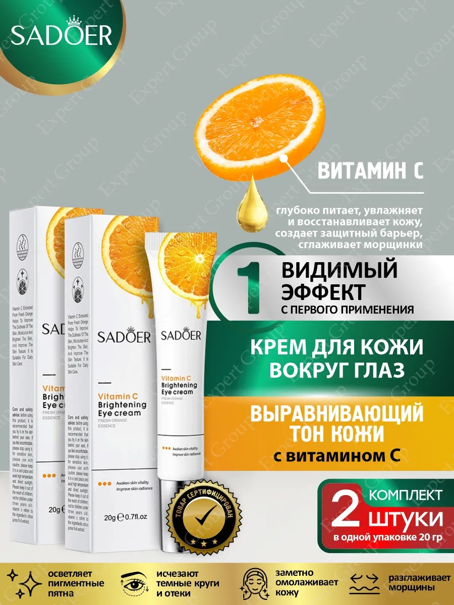 | Комплектация | Крем выравнивающий тон кожи вокруг глаз Sadoer с витамином С 20 гр х 2 шт. |