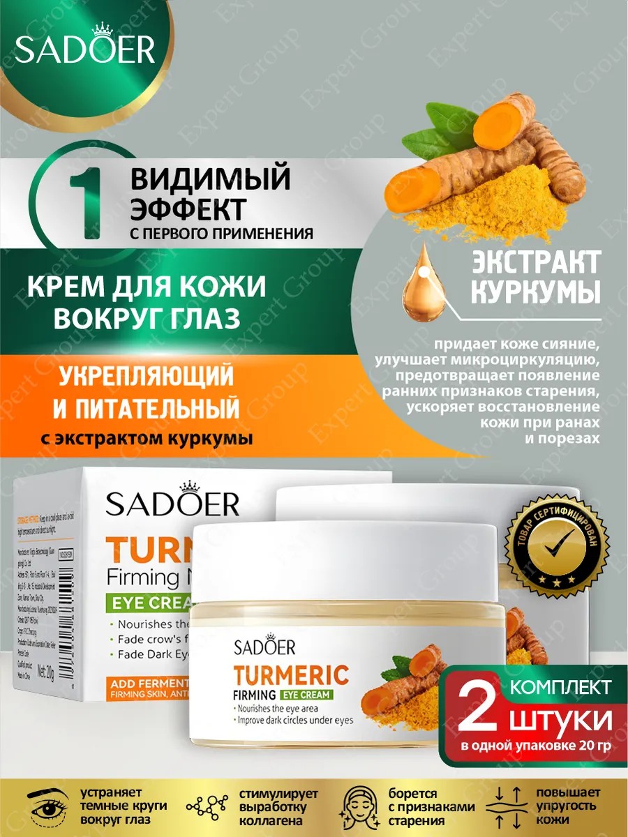 | Комплектация | Укрепляющий и питательный крем для кожи вокруг глаз Sadoer с экстрактом куркумы 20гр х 2 шт |