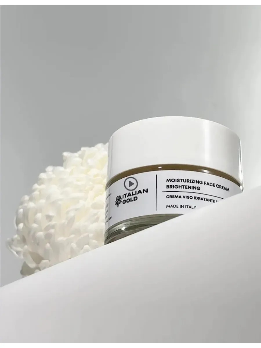 Moisturizing Face Cream Brightening by Italian Gold (made in Italy) is a moisturizing cream for the face, neck, and décolleté that hydrates and brightens dull, uneven skin tone. It adds radiance, provides a lifting effect, and improves tone and elasticity. RECOMMENDED for all skin types, especially dull and tired skin. Active ingredients: Rosehip seed oil and shea butter (organic) deeply nourish and restore skin, helping to restore its elasticity and softness. Brown algae extract and hydrolyzed plant extracts promote a natural radiance and even tone. A complex of natural oils (sesame, almond, flaxseed, and olive) moisturizes and protects the skin from external factors. The cream has a light texture that is quickly absorbed without leaving a greasy film. It gently cares for your skin, providing long-lasting hydration, restoration, and radiance. Suitable for sensitive skin. Dermatologically tested.