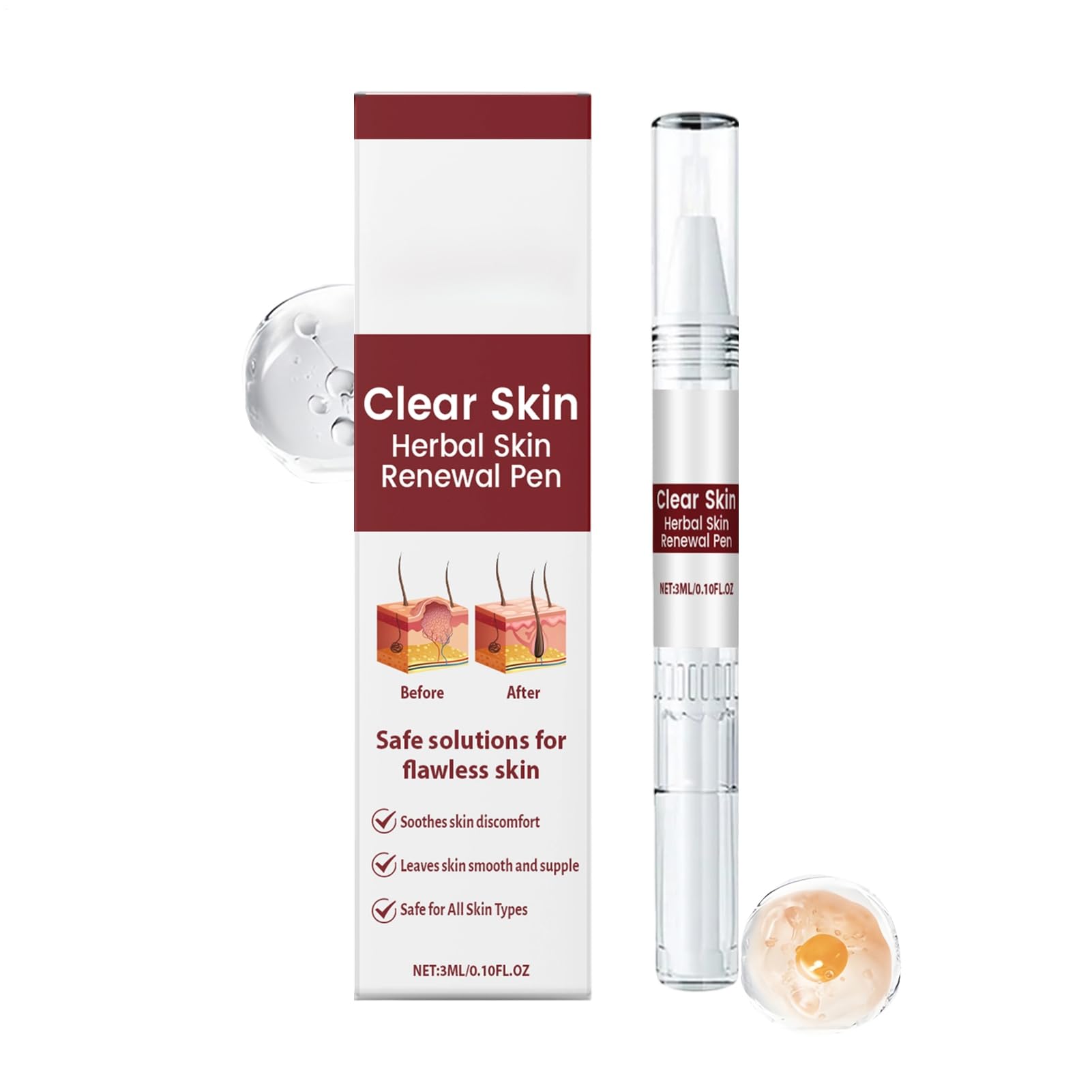 The Skin Renewing Facial Repair Pen is a versatile beauty solution that enhances your skin care routine with its convenient 3ml size to ensure comfort and precise use. This innovative facial tool provides moisturizing, firming and brightening benefits, making it an important addition to your daily routine. Suitable for women of all skin types, including sensitive, dry, oily and mature skin, this repair pen fluid provides deep hydration and promotes a radiant complexion. Perfect for use at home in the morning routine or as part of your travel essentials, it integrates seamlessly into the pre-makeup and post-cleansing steps. Enhance your skincare experience with this advanced formula developed to meet the needs of modern beauty enthusiasts. Specifications. Product name: Skin rejuvenation pen Net content: 3 ml Weight: approx. 17 grams. Product dimensions: approx. 12.5 x 1.5 cm (L x W x H). List 1 x skin renewal pen. Note: 1st Due to lighting effects and viewing angles, there may be color differences in the product. 2nd Due to manual measurement, there may be deviations in product size. Thank you for your understanding. SAFETY WARNING Not applicableConsistent skin care: With its gentle formula and synergistic natural active ingredients, the Skin Renewal Pen enables safe daily use for effective skin renewal. It is suitable for morning and evening routines and thus supports long-term consistent care without potential irritants. Anti-Blemish Formula: The Skin Renewal Pen is designed with an effective whitening formula to reduce dullness and blemishes. The carefully formulated multi-botanical extract complex guarantees gentle refinement and an instantly radiant complexion. This allows users to maintain a clear complexion even during seasonal transitions. Skin care on the go: Thanks to its pen-shaped and portable design, the skin repair pen allows precise point treatment through the rotating and dosing function. This way, skin needs can be easily addressed anytime, anywhere. Intensive moisturizing care: the skin care stick provides intensive hydration with a light and quickly absorbed . It does not leave a greasy feeling and provides soft, supple skin all day long. Ideal for the daily care routine or for refreshing applications on the go. Correction of spots: the skin renewal stick works specifically against small impurities and regulates pigment spots for an even skin appearance with improved ideal for the daily care routine to achieve a balanced complexion.Huidreparatiepen, 3 ml, hydraterend, verstevigend, helderder, gezichts-vochtpen, voor gevoelige, vette en rijpe huid, huishouden, dagelijks gebruik De huidvernieuwende gezichtsreparatiestift is een veelzijdige schoonheidsoplossing die je huidverzorgingsroutine met zijn handige formaat van 3 ml verbetert, om comfort en nauwkeurig gebruik te garanderen. Dit innovatieve gezichtsgereedschap biedt hydraterende, verstevigende en helderende voordelen en maakt het tot een belangrijke aanvulling op je dagelijkse routine. Geschikt voor vrouwen van alle huidtypes, inclusief de gevoelige, droge, vettige en rijpe huid, zorgt deze reparatiepenvloeistof voor diepe hydratatie en bevordert een stralende teint. Perfect voor gebruik thuis in de ochtendroutine of als onderdeel van je reisbenodigdheden, integreert het naadloos in de stappen voor de make-up en na het reinigen. Verbeter je huidverzorgingservaring met deze geavanceerde formule die is ontwikkeld om aan de behoeften van moderne schoonheidsliefhebbers te voldoen. Specificaties. Productnaam: Huidverjonging stift Netto inhoud: 3 ml Gewicht: ca. 17 gram. Productafmetingen: ca. 12,5 x 1,5 cm (l x b x h). Lijst 1 x huidvernieuwingsstift. Opmerking: 1ste Vanwege lichteffecten en weergavehoeken kunnen er kleurverschillen in het product optreden. 2de Vanwege de handmatige meting kunnen er afwijkingen in de productgrootte optreden. Bedankt voor je begrip. VEILIGHEIDSWAARSCHUWING Niet van toepassingConsequente huidverzorging: met de zachte formule en de synergetische natuurlijke werkzame stoffen maakt de Skin Renewal Pen een veilig dagelijks gebruik mogelijk voor een effectieve huidvernieuwing. Hij is geschikt voor ochtend- en avondroutines en ondersteunt zo een langdurige constante verzorging zonder potentiële irriterende stoffen. Formule tegen onzuiverheden: de Skin Renewal Pen is ontworpen met een effectieve bleekformule om dofheid en onzuiverheden te verminderen. Het zorgvuldig samengestelde multi-botanisch extractcomplex garandeert een zachte verfijning en een direct stralende teint. Zo kunnen gebruikers ook tijdens seizoensovergangen een heldere teint behouden. Huidverzorging voor onderweg: dankzij het penvormige en draagbare ontwerp maakt de huidreparatiepen een nauwkeurige puntbehandeling mogelijk door de draai- en doseerfunctie. Zo kunnen huidbehoeften altijd en overal eenvoudig worden aangepakt. Intensieve hydraterende verzorging: de huidverzorgingsstift zorgt voor intensieve hydratatie met een lichte en snel intrekkende . Hij laat geen vettig gevoel achter en zorgt de hele dag voor een zachte, soepele huid. Ideaal voor de dagelijkse verzorgingsroutine of voor verfrissende toepassingen onderweg. Correctie van vlekken: de huidvernieuwingsstift werkt gericht tegen kleine onzuiverheden en reguleert pigmentvlekken voor een gelijkmatig huidbeeld met verbeterde ideaal voor de dagelijkse verzorgingsroutine om een evenwichtige teint te bereiken.