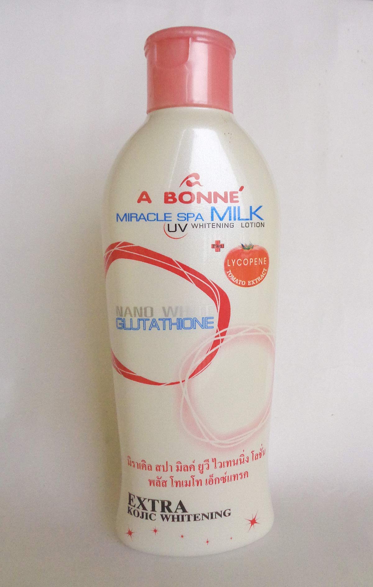 A GOOD MIRACLE SPA UV MILK WHITENING LOTION MORE TOMATO natural extract FIRMING natural whitening NATURAL SMOOTH amp RADIANT EXTRA KOJIC WHITENING An innovative formula of concentrated milky lotion, enriched with tomato lycopene extract and skin nutrients from natural essences, including UV protection for lightened, clear and smooth skin with a healthy glow, its light texture is fast-absorbing and non-greasy. Main Ingredients: Milk Protein - hydrates the skin, making it irresistibly soft, smooth and supple. NANOWHITE GLUTATHIONE - reduces dark spots and slows pigmentation lightens skin tone naturally. EXTRA KOJIC prevents the formation of melanin, conditions skin so that freckles and spots gradually disappear, revealing clearer skin. TOMATO EXTRACT - is rich in lycopene, which fights free radicals, prevents wrinkles, keeps skin soft and smooth. Direction: Apply this cream lotion all over the body. Skin becomes radiant and its tone will be naturally lightened after daily use. New Weight: 200ml. Brand New Thailand Product!! Thailand's department store. All items are new and in excellent condition.200ML. TOMATO EXTRACT is rich in LYCOPENE, which fights free radicals, prevents wrinkles, and keeps skin soft and smooth. NANOWHITE GLUTATHIONE reduces dark spots and slows pigmentation naturally brightens the complexion. KOJIC prevents melanin formation and revitalizes the skin so that freckles and dark spots gradually fade, revealing fairer skin. A BONNE MIRACLE SPA LAIT UV BLANCHIMENT LOTION PLUS DE TOMATE extrait naturel FERMETÉ blanchissement naturel NATUREL SMOOTH amp RADIANT EXTRA KOJIC BLANCHIMENT Une formule innovante de concentré lotion laiteuse, enrichi de lycopène de tomate extraire et la peau les nutriments des essences naturelles, y compris la protection UV pour la peau allégé, claire et lisse avec un éclat sain, sa texture légère est à absorption rapide et non gras. Ingrédients principaux: protéines de lait - hydrate la peau, la rendant irrésistible douce, lisse et souple. NANOWHITE GLUTATHIONE - réduit les taches sombres et ralentit la pigmentation éclaircit le teint naturellement. EXTRA KOJIC empêche la formation de la mélanine, les conditions peau afin que les taches de rousseur et les taches disparaissent peu à peu, révélant une peau plus claire. TOMATE EXTRAIT - est riche en lycopène, qui combat les radicaux libres, prévient les rides, garder la peau douce et lisse. Direction: Appliquer cette crème lotion sur tout le corps. Peau devient radieuse et sa tonalité sera naturellement allégé après l'utilisation quotidienne. New Poids: 200ml. Produit de la Thaïlande flambant neuf !! De grand mag de la Thaïlande. Tous les articles sont neufs et en excellent état.200ML. L'EXTRAIT DE TOMATE est riche en LYCOPÈNE qui combat les radicaux libres, prévient les rides et garde la peau douce et lisse. Le NANOWHITE GLUTATHION réduit les taches brunes et ralentit la pigmentation illumine naturellement le teint. KOJIC prévient la formation de mélanine, revitalise la peau afin que les taches de rousseur et les taches brunes disparaissent progressivement, révélant une peau plus claire.