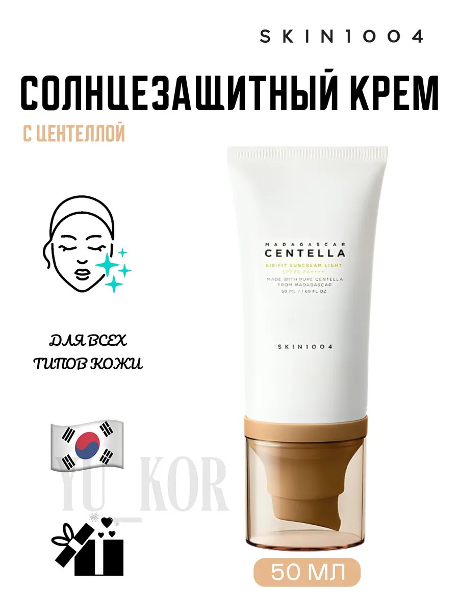 Крем SKIN1004 Madagascar Centella Air-Fit Suncream Light SPF30 PA++++ обеспечивает надёжную защиту от солнца, тем самым препятствуя появлению ожогов, пигментации и фотостарения, а также смягчает и увлажняет кожу, укрепляя естественный защитный барьер.