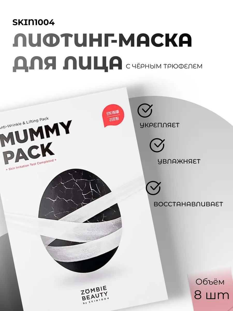 | Комплектация | SKIN1004 Антивозрастная лифтинг-маска с с черным трюфелем Zombie Beauty Mummy Pack&Activator Kit |