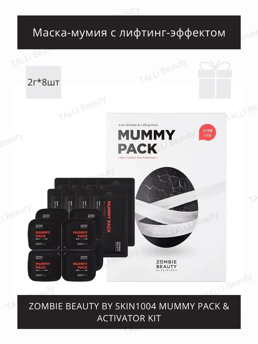 Антивозрастная корейская лифтинг-маска для лица ZOMBIE BEAUTY BY SKIN1004 MUMMY PACK & ACTIVATOR KIT 2г*8шт моментально улучшает внешний вид кожи.