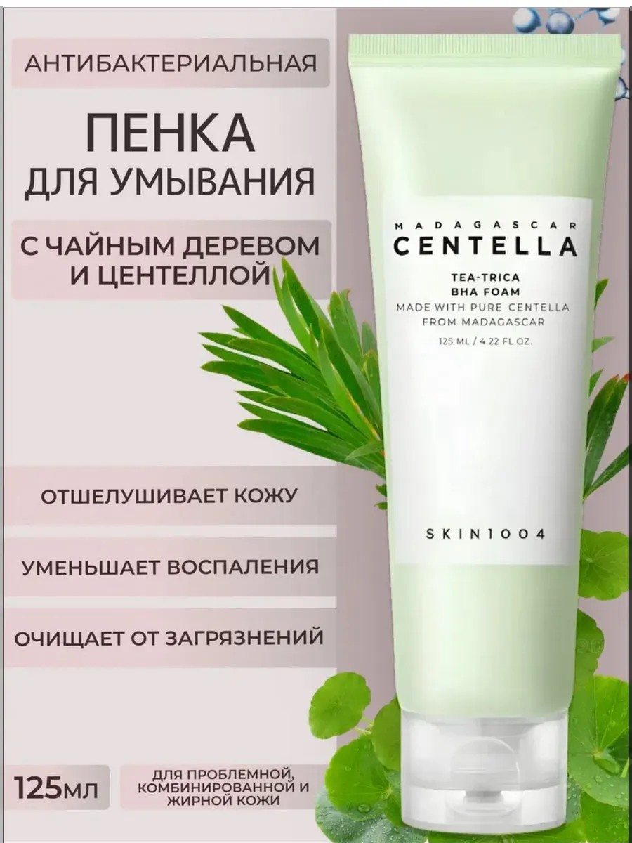 Пенка для умывания MADAGASCAR CENTELLA Tea-Trica BHA. Пенка глубоко очищает кожу, избавляя от загрязнений и омертвевших частичек кожи, не травмируя её, благодаря хорошему успокаивающему действию. Пенка является подходящим средством очищения для обладателей проблемной чувствительной кожи, склонной к высыпаниям.