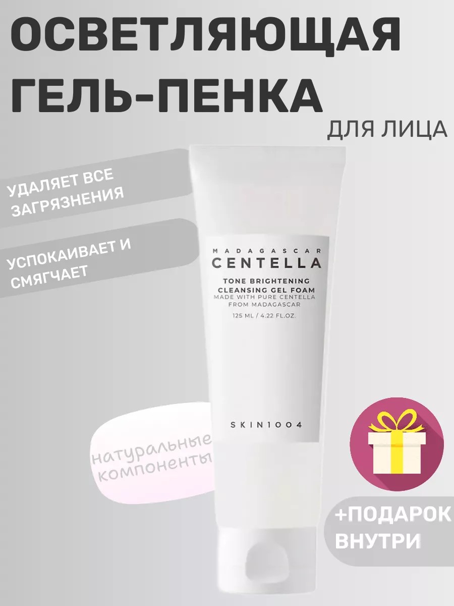 Гель-пенка SKIN1004 Madagascar Centella Tone Brightening Cleansing Gel Foam бережно удаляет загрязнения, осветляет и выравнивает тон, не вызывает чувства стянутости и сухости после умывания. Очищает от омертвевших частиц и мягко отшелушивает.