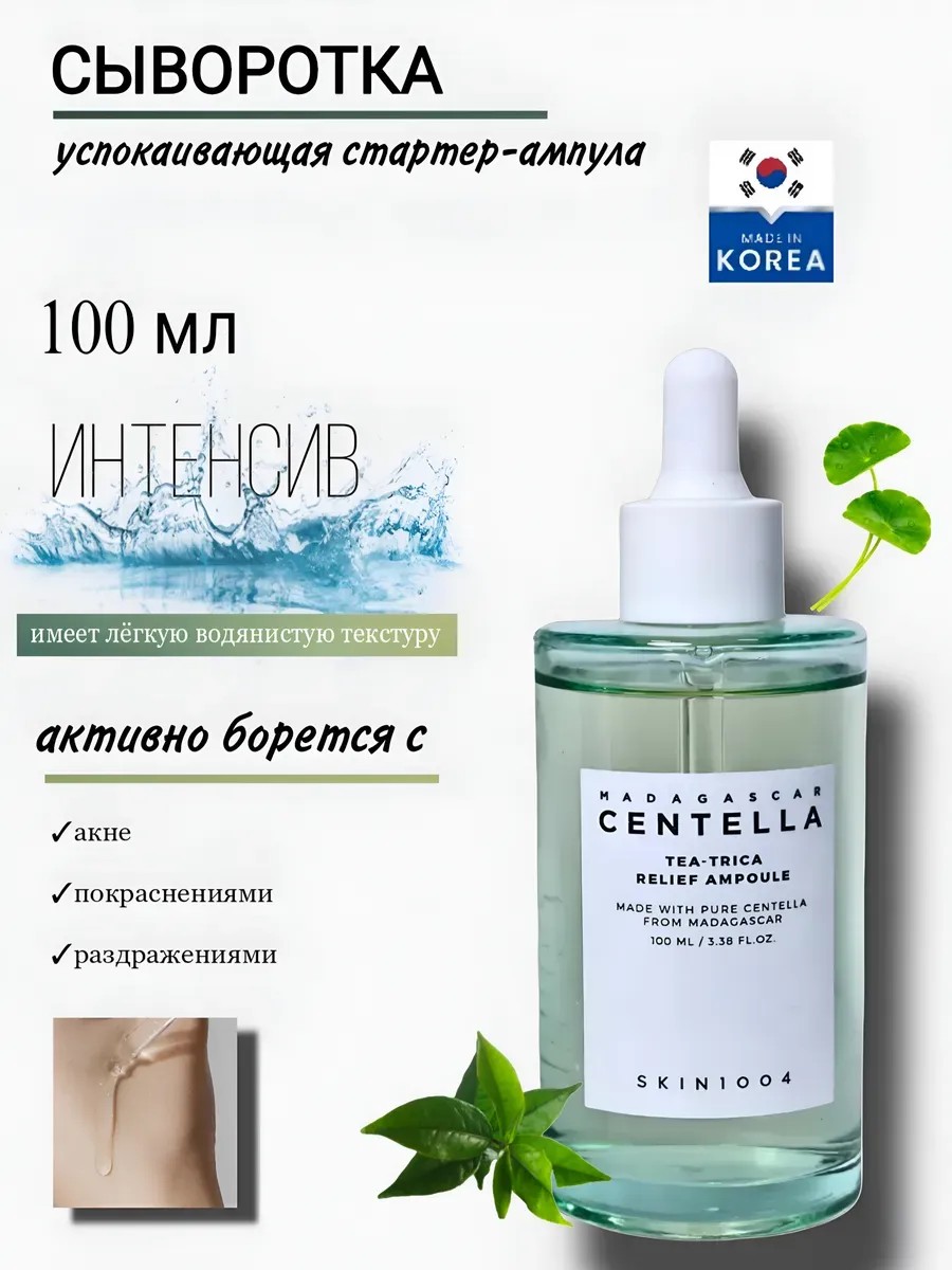 Ампула SKIN1004 Madagascar Centella Tea-Trica Relief Ampoule — SOS-средство от прыщей и воспалений, которое помогает в борьбе с акне, смягчает кожу, уменьшает покраснение и раздражение, отлично ухаживает за проблемной кожей.